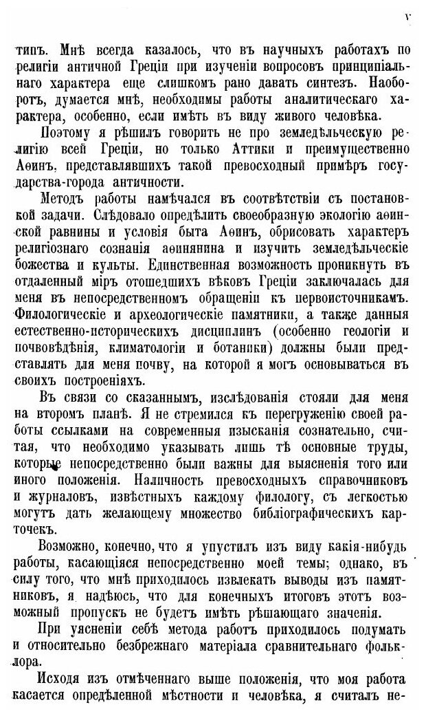 В книге рассматриваются мифологические и обрядовые стороны земледельческих культов древней Греции на примере Афин. Размышляя о возникновении земледельческой магии, автор приводит свидетельства древних, что «в отдаленные времена девственная Земля добровольно, сама по себе, приносила все растущее и живущее» и, по сути, человек в магии не нуждался. Но отношения со временем изменились и «человек научился требовать от земли рождений и принуждал её вступать в брачные отношения, как это он делал в известной сакральной формуле, звучавшей императивностью магического заклинания. Смотря на небо, грек говорил, обращаясь к Зевсу: «проливайся дождем» (??), потом произносил по отношению к земле: «будь беременна» (???)» . Богаевский приводит различные этимологии имен богов, показывает, как сплетались мифологические сюжеты и усложнялся культ. В изначальный культ Матери Земли - Ге, например, вошла Деметра, Кора (Персефона) и другие божества. По ходу исследования автор вскрывает много интересных моментов, например, этимология слова Деметра происходит от критского deai - ячмень, откуда Де-Метра, это Ячмень-Матерь, мать ячменного поля (есть и другие версии происхождения этого слова, которые автор приводит). Обряд варки священной каши, во время которого в горшке, как символе Матери Земли, варились различные зерна, подслащенные сладостями, как символ будущего урожая, выполнял магическую функцию подражания процессам, происходящим в Земле, произрождающей будущий урожай. Вскрывается назначение обрядов эсхрологии - сквернословия, как элемент отпугивания зла, с одной стороны, и побуждающий к зачатию, плодородию земли, с другой. В процессе чтения можно обнаружить многие параллели со славянской земледельческой магией (или вообще, индоевропейской), на некоторые Богаевский прямо указывает в примечаниях.Темы, поднятые автором: Основные черты религиозного сознания афинского земледельца, Земледельческое божество и его культ, Земное и почвенное божество: Земля и почва, Ге, Деметра, Кора, Плутос, Триптолем, Кекропс, Эрехтей, Эрихтоний, Агравла, Дисавл, Баубо, Лакий, Священная вспашка, Всезерние, Всеплодие, Всеовощье, Ирезиона.Вышел только первый том этой работы. Воспроизведено в оригинальной авторской орфографии издания 1916 года (издательство "Петроград: Типография М.А. Александрова").