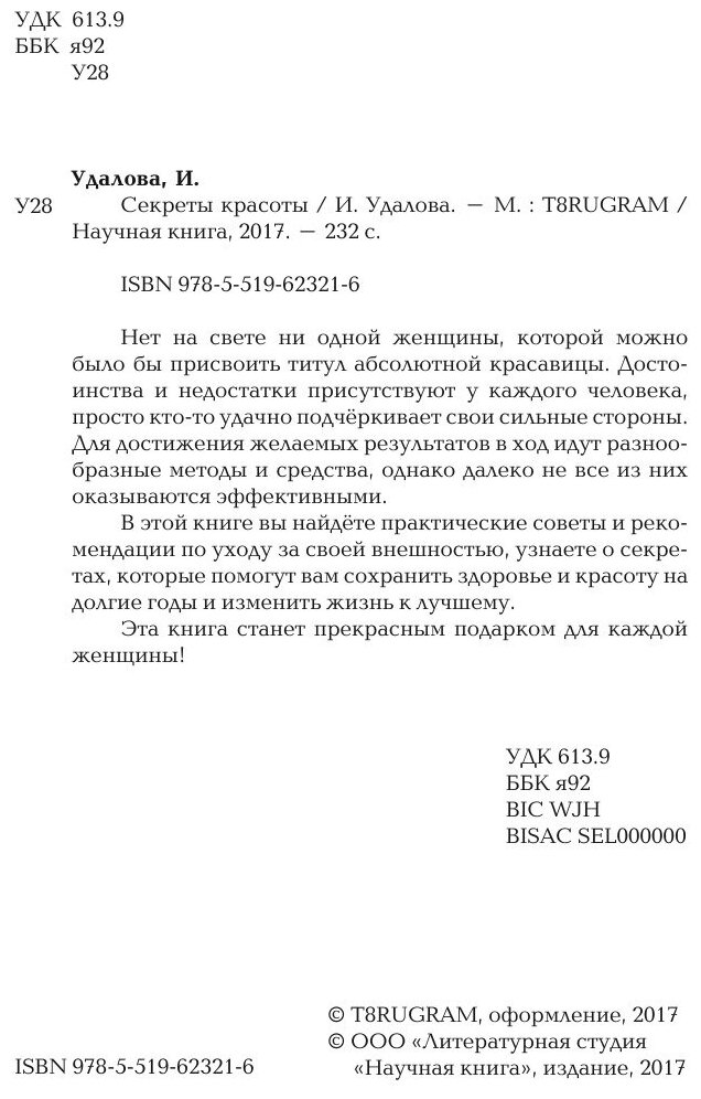Книга: Книга Секреты красоты (Удалова Ирина), 2018