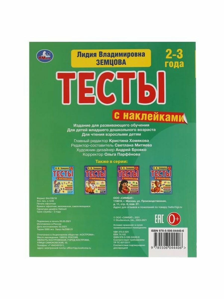 Книга Тесты с наклейками Память. 2-3года Л.В.Земцова 64 стр. УМка 978-5-506-04440-6 (Земцова Лидия Владимировна); Умка, 2021
