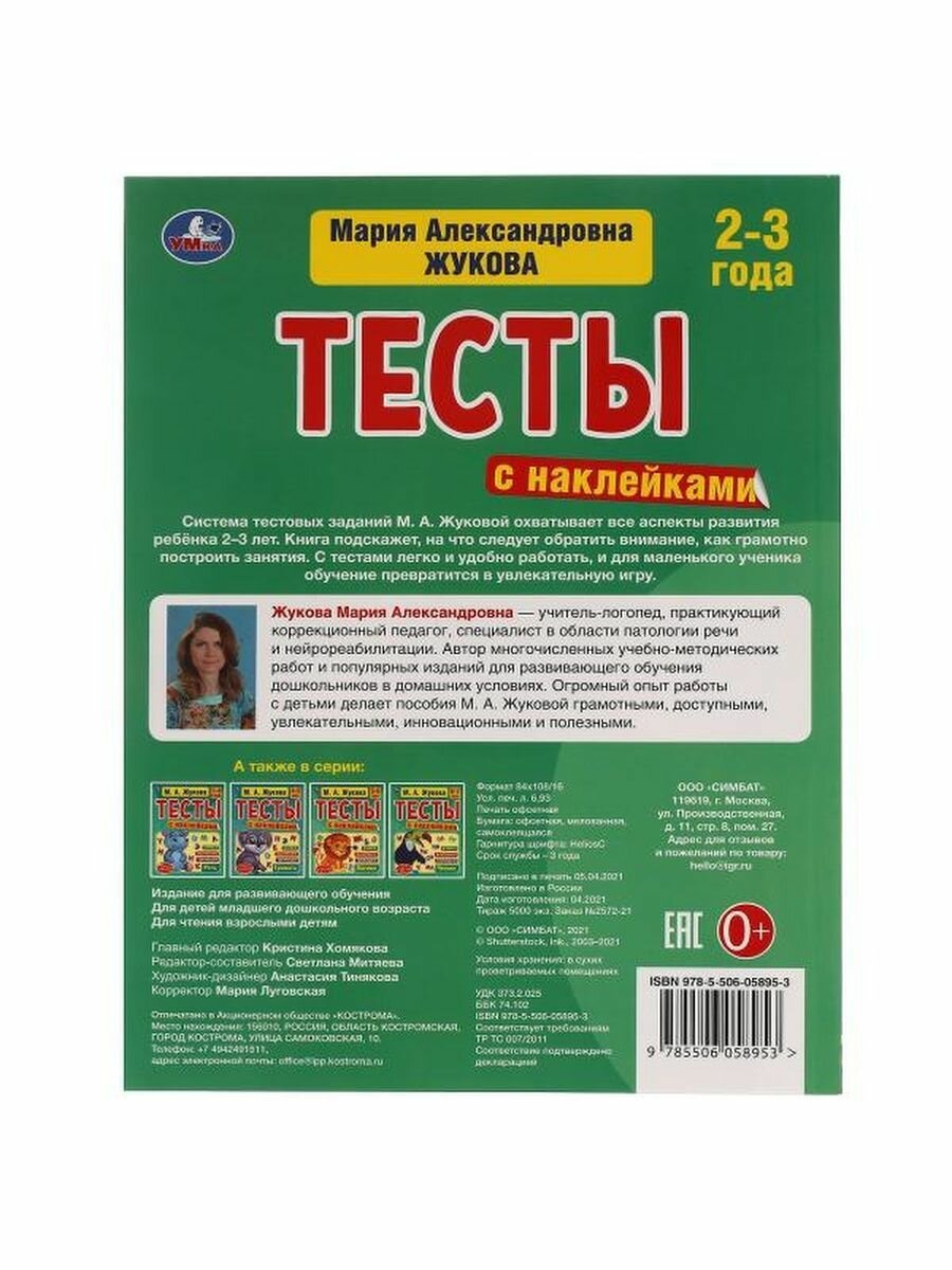 Книга М.А. Жукова 2-3 года. Тесты с наклейками. 195х255 мм. 64 стр. Мелованная бумага. (Жукова Мария Александровна); Умка, 2021