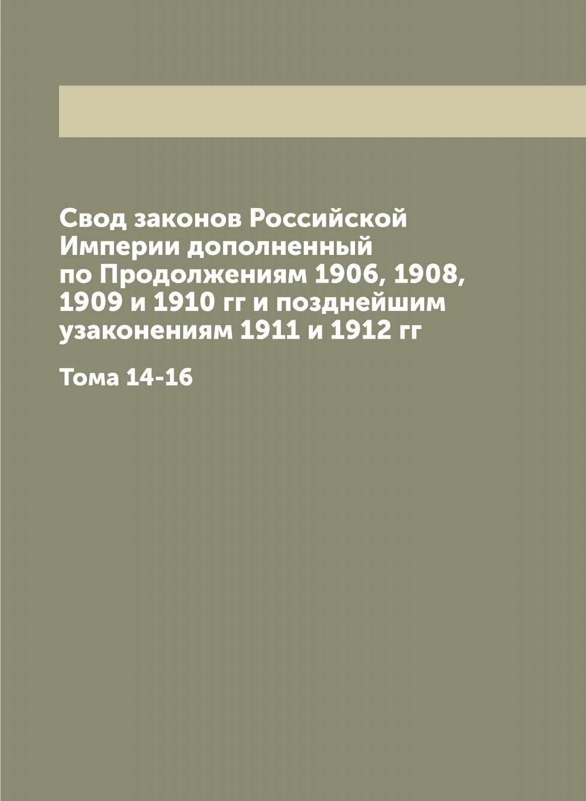 Книга Свод законов Российской Империи дополненный по Продолжениям 1906 1908 1909 и 19... (без автора)