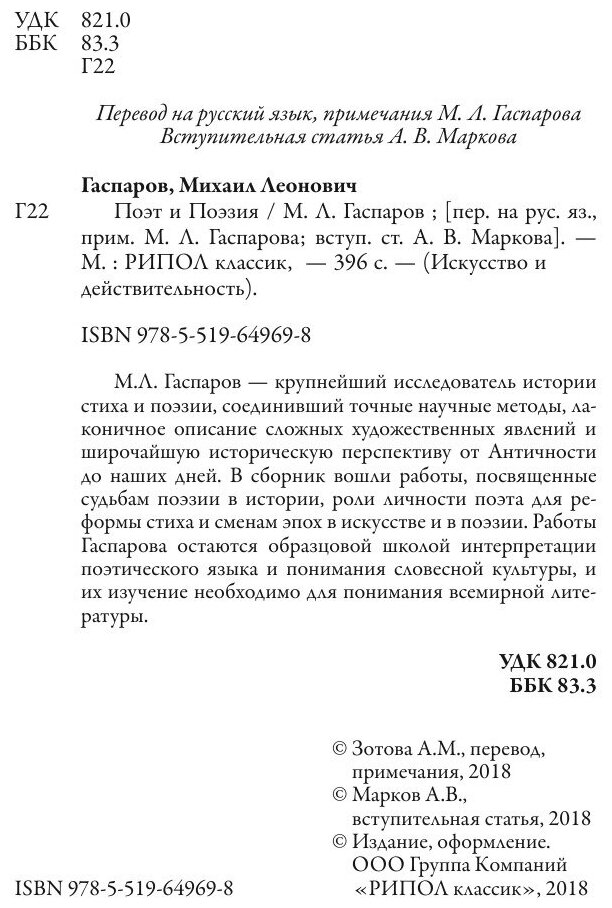 Книга: Книга Поэт и Поэзия (Гаспаров Михаил Леонович), 2017