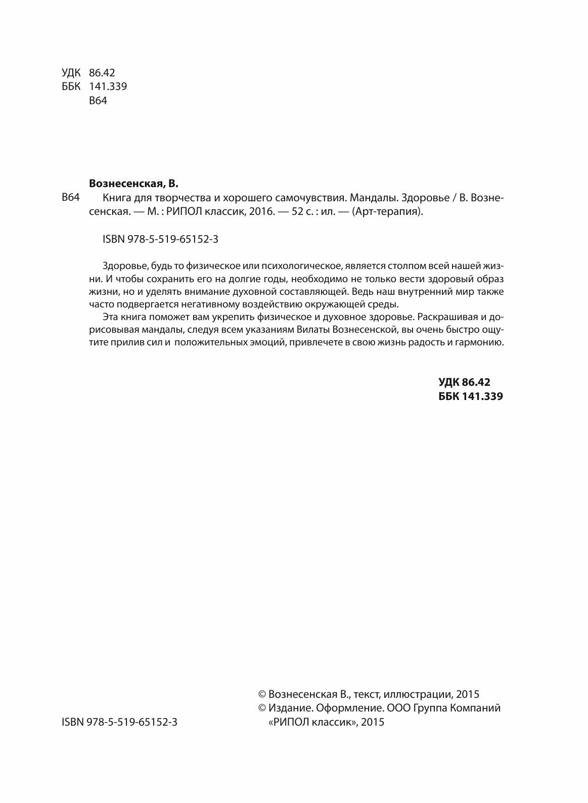 Книга для творчества и хорошего самочувствия. Мандалы. Здоровье (Вознесенская Вилата), 2016