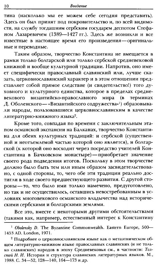 Книга посвящена одному из самых необычных и трудных для изучения памятников средневековой южнославянской книжности, за которым еще со времени И.В. Ягича утвердилось значение одного из главных источников сведений о книжной и книжно-языковой культуре православных славян в эпоху Средневековья. Основной предмет исследования, имеющего ярко выраженный междисциплинарный характер, — представления Константина Костенецкого о происхождении, природе и достоинстве церковнославянского языка и письменности. Подробно обсуждаются вопросы об отношении этих представлений к византийско-православной культурной традиции в целом и к доктрине и практике византийских и славянских исихастов XIV в., в частности. Приводится целостный очерк жизни и творчества Константина Костенецкого в контексте византийско-славянской истории и культуры в период утверждения османского владычества на Балканах. Книга рассчитана на специалистов в области истории, истории культуры и истории литературно-книжного языка в ареале Slavia Orthodoxa в эпоху Средневековья.