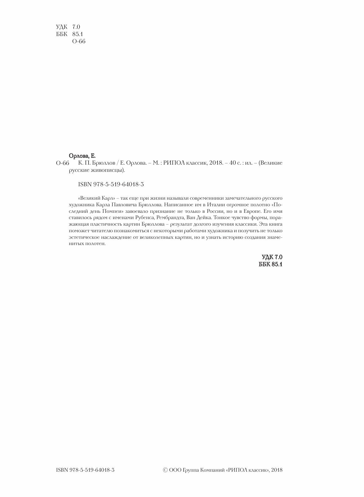 Книга: Книга Брюллов (Орлова Е.А.), 2018