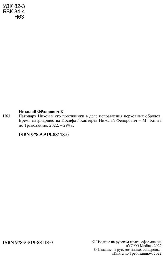 Книга Патриарх Никон и его противники в деле исправления церковных обрядов. Время патри... (Каптерев Николай Фёдорович), 2022