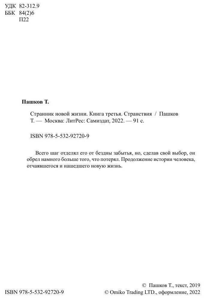 Книга Странник новой жизни. Книга третья. Странствия (Тод Пашков); Автор, 2019