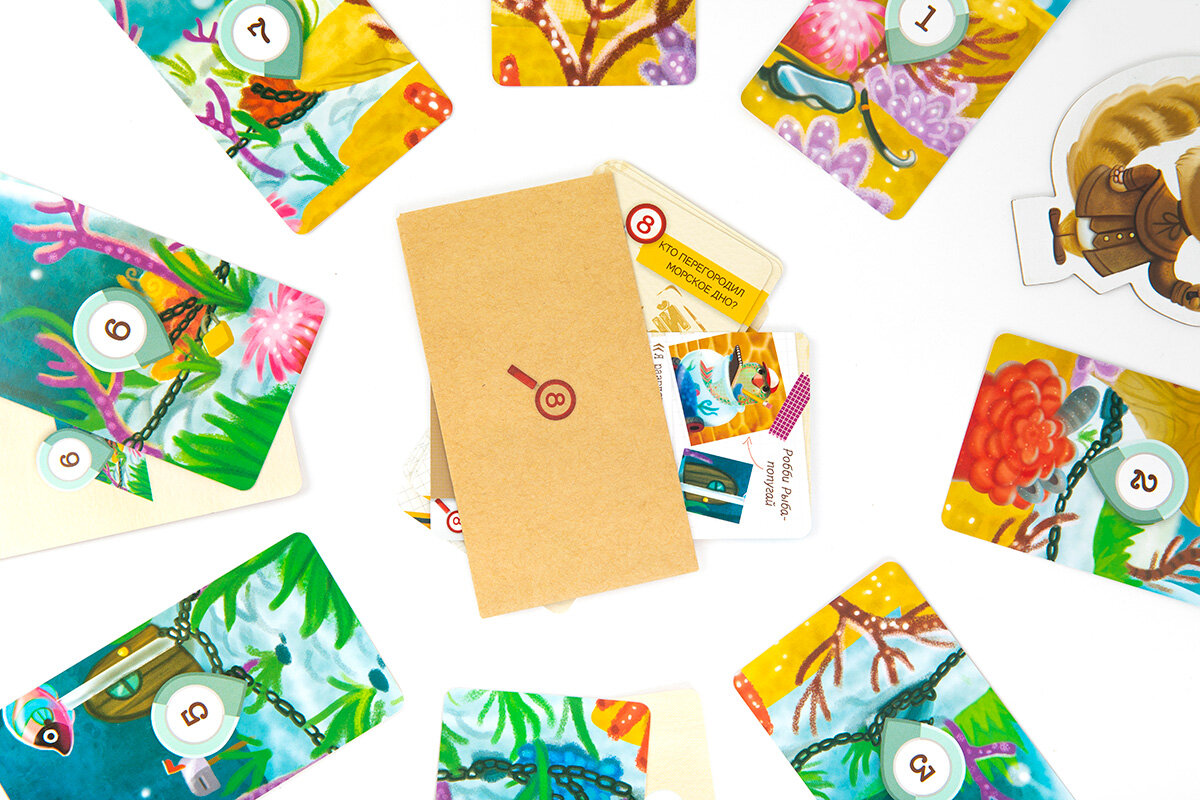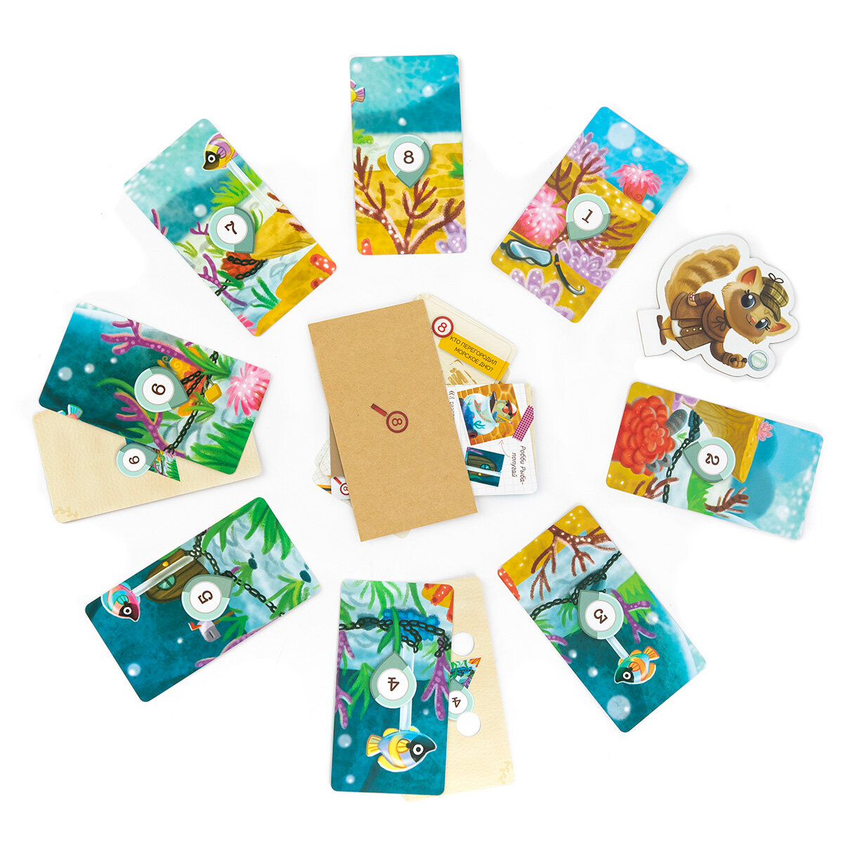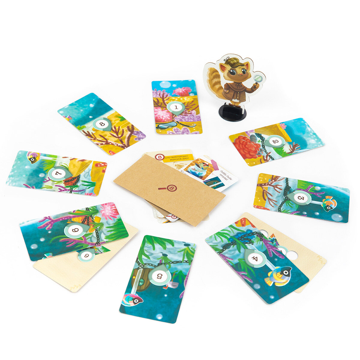 | Комплектация | 4 набора карт "Истории", 4 конверта с разгадками, Прозрачная карта, Записная книжка детектива, Правила игры |