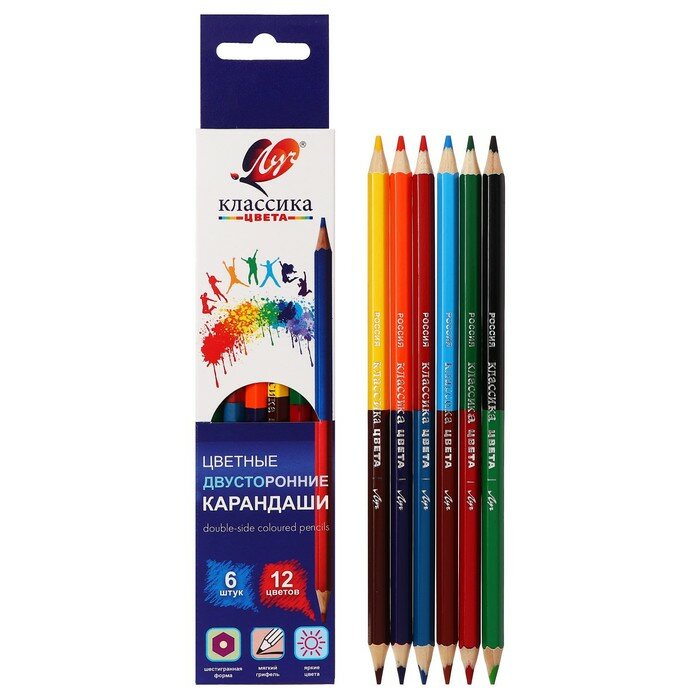 Карандаши цветные Классика двусторонние 6 штук 12 цветов ЛУЧ