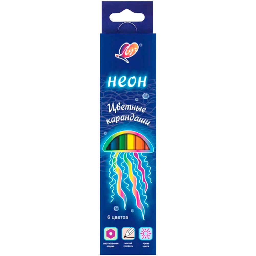 Карандаши цветные Фантазия. Неон 6 цветов ЛУЧ