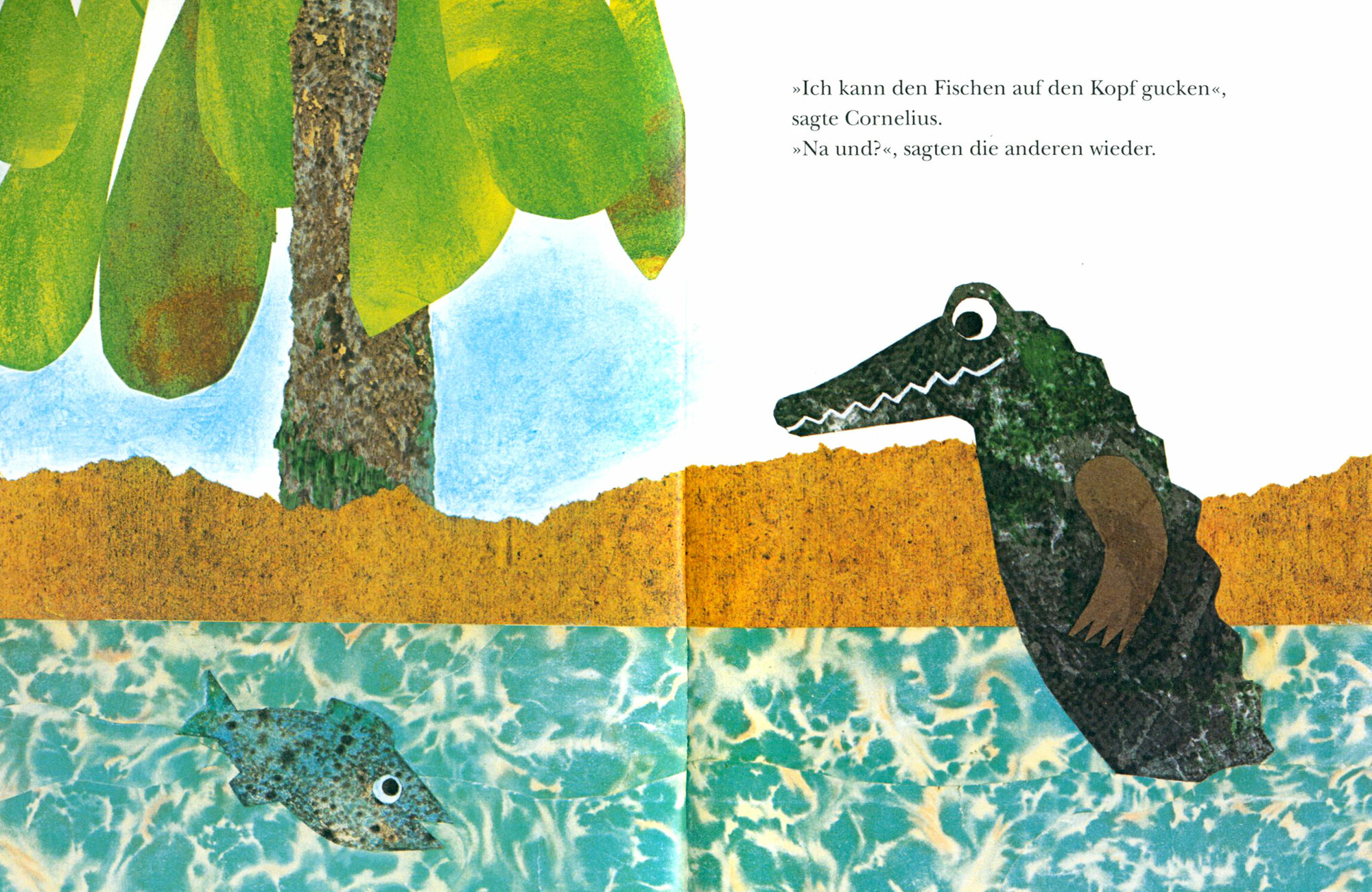 Cornelius ist ein Krokodil, das gerne aufrecht durch die Gegend lauft. Die anderen Krokodile tun so, als ware ihnen das egal. Doch als Cornelius noch dazu lernt, auf seinem Kopf zu stehen und am Schwanz zu hangen, wachen sie auf aus ihrer Lethargie.