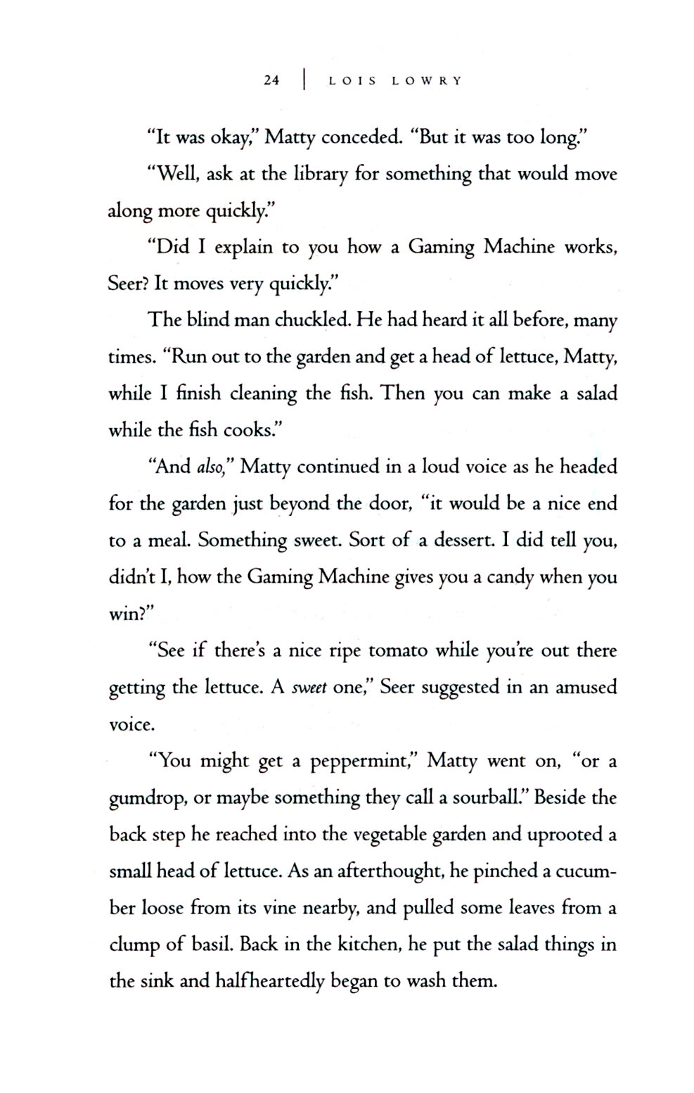 Award-winning author Lois Lowry challenges readers to imagine what our world could become, how people could evolve and what could be considered valuable in this fascinating follow-up to THE GIVER.