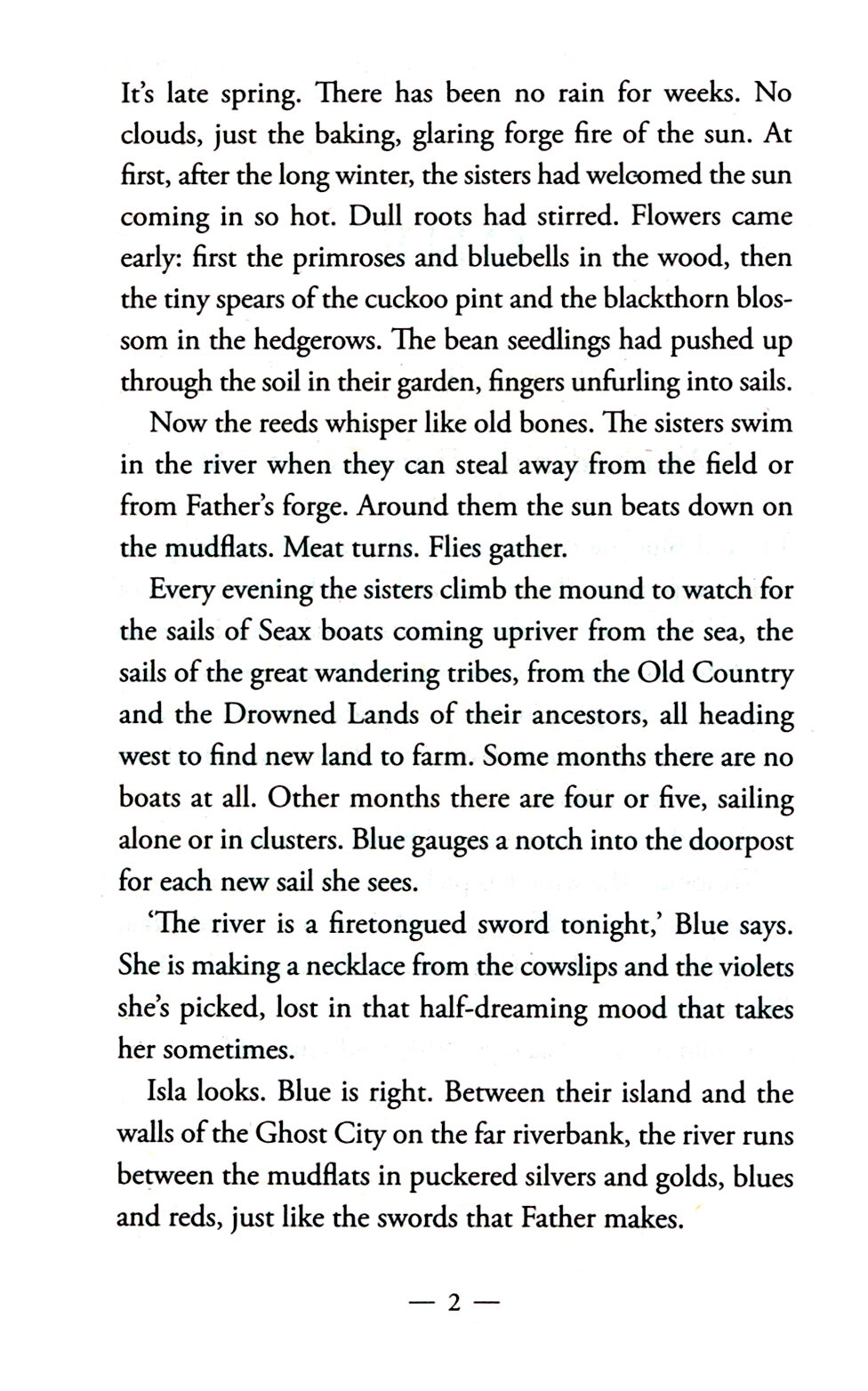 When the local Seax overlord discovers Isla's secret there is nowhere for the sisters to hide, except across the water to the walled ghost city, Londinium. Here Blue and Isla find sanctuary in an underworld community of squatters, emigrants, travellers and looters, led by the mysterious Crowther, living in an abandoned brothel and bathhouse. But trouble pursues them even into the haunted city.