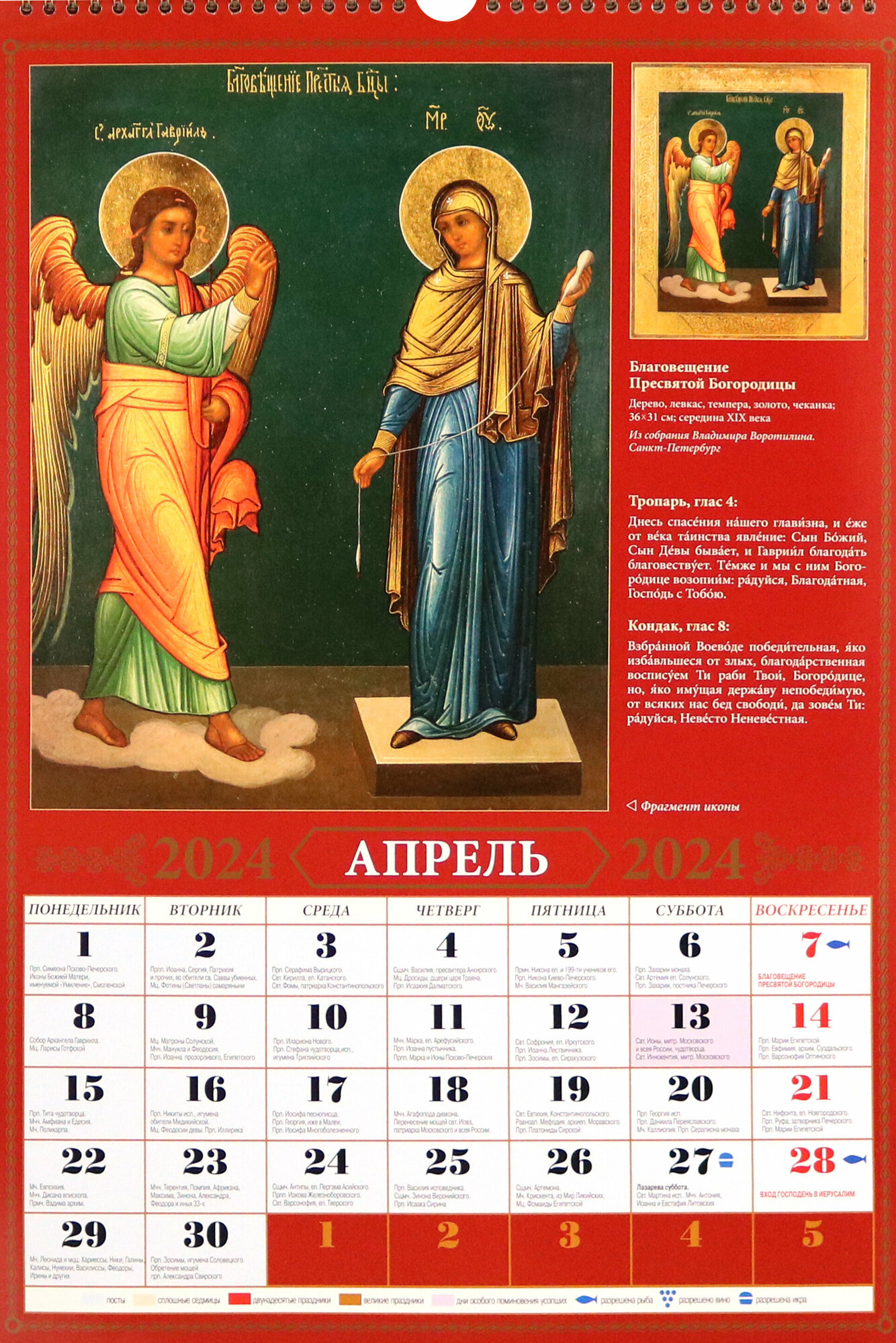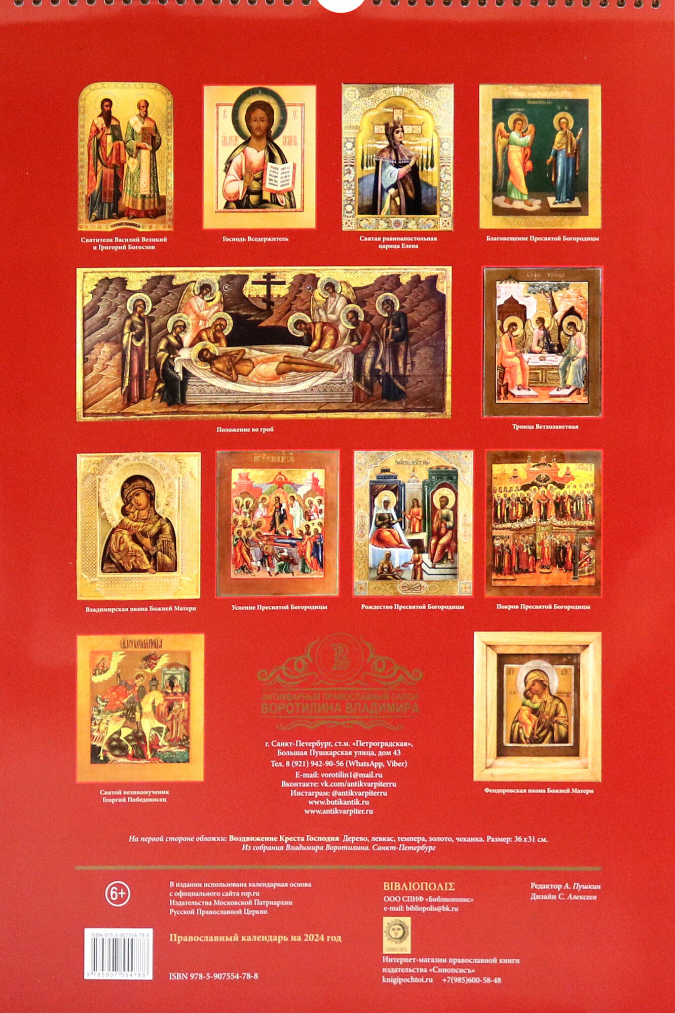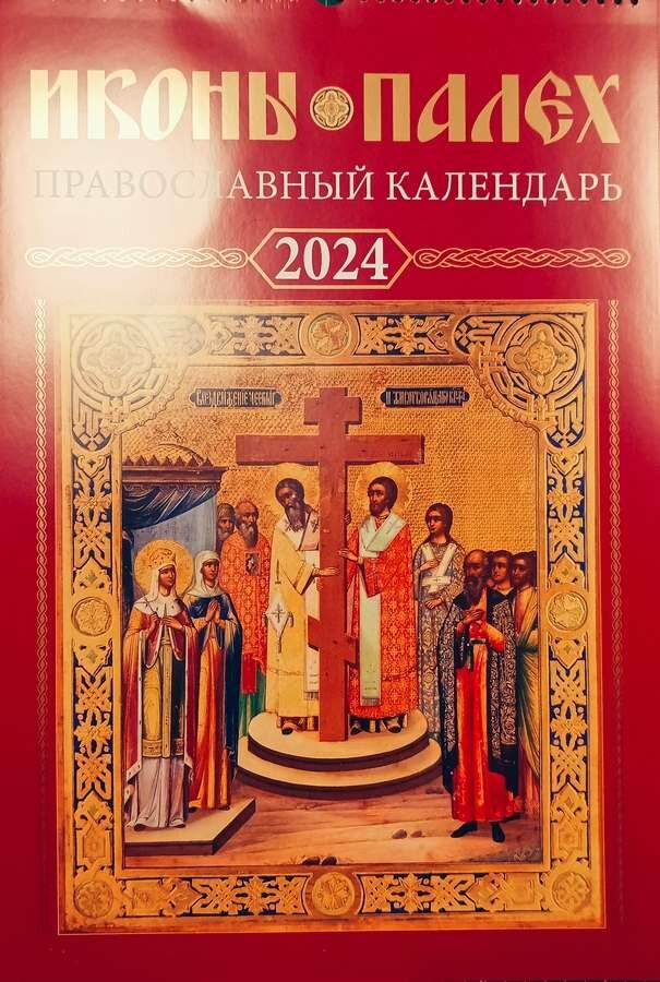 В православном перекидном календаре на 2024 год представлены иконы, выполненные в знаменитых мастерских Палеха. Каждая икона сопровождается тропарем и кондаком. В календарной сетке указаны двунадесятые и великие праздники, посты, трапезы, сплошные седмицы, дни особого поминовения усопших.