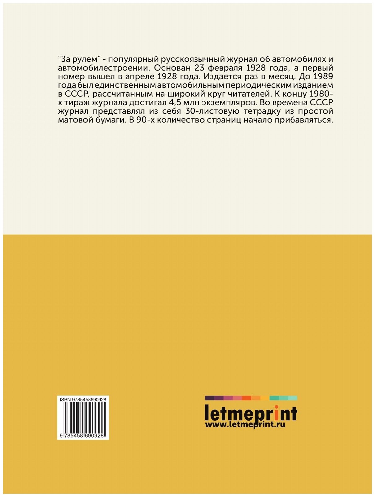 "За рулем" - популярный русскоязычный журнал об автомобилях и автомобилестроении. Основан 23 февраля 1928 года, а первый номер вышел в апреле 1928 года. Издается раз в месяц. До 1989 года был единственным автомобильным периодическим изданием в СССР, рассчитанным на широкий круг читателей. К концу 1980-х тираж журнала достигал 4,5 млн экземпляров. Во времена СССР журнал представлял из себя 30-листовую тетрадку из простой матовой бумаги. В 90-х количество страниц начало прибавляться.