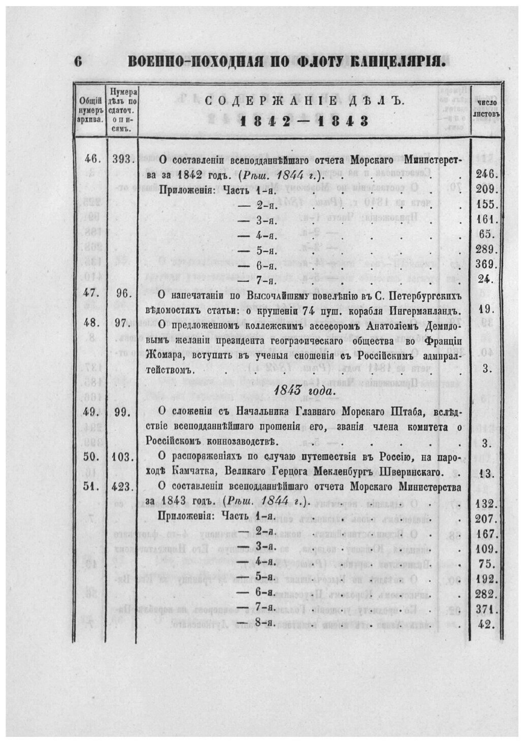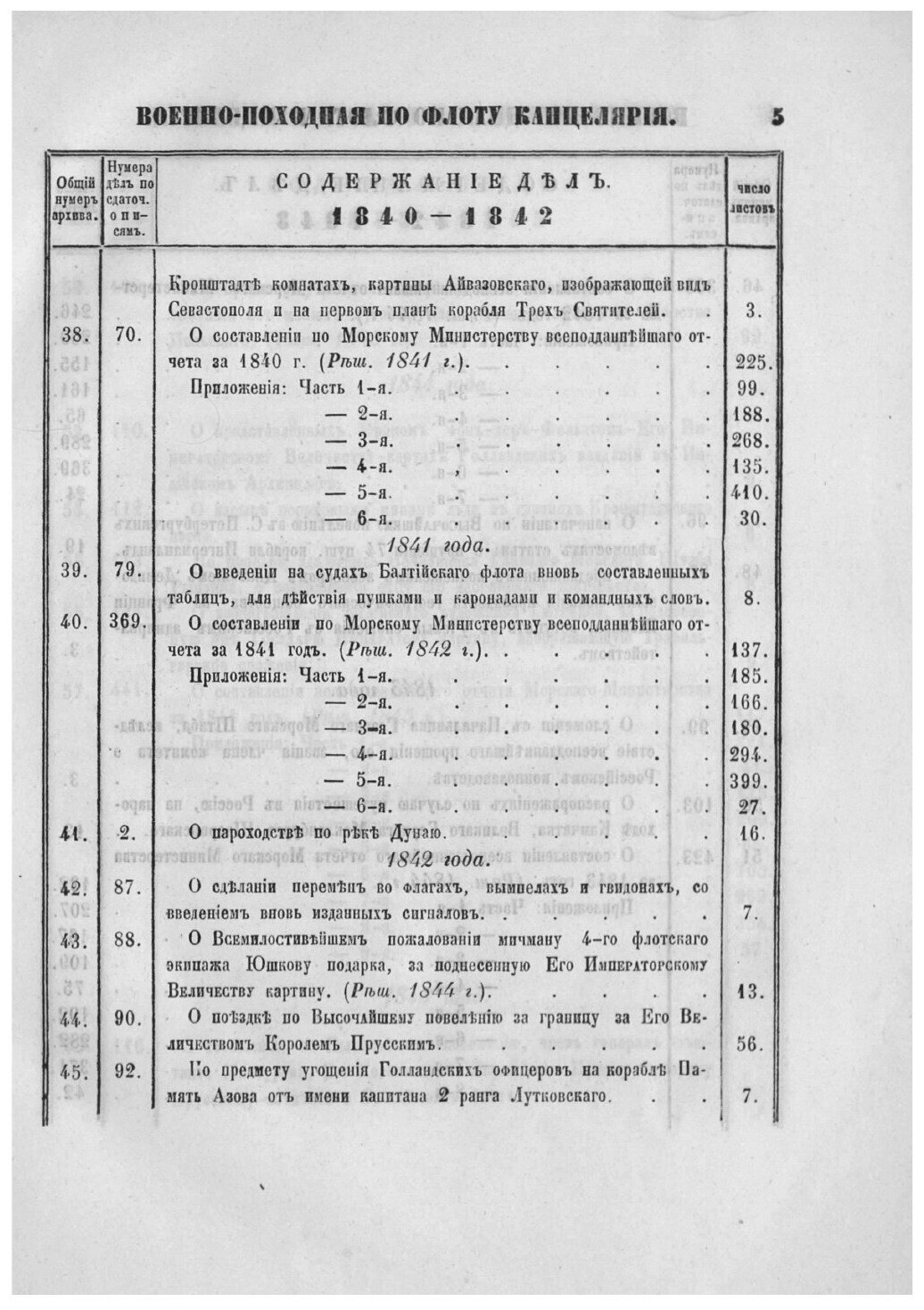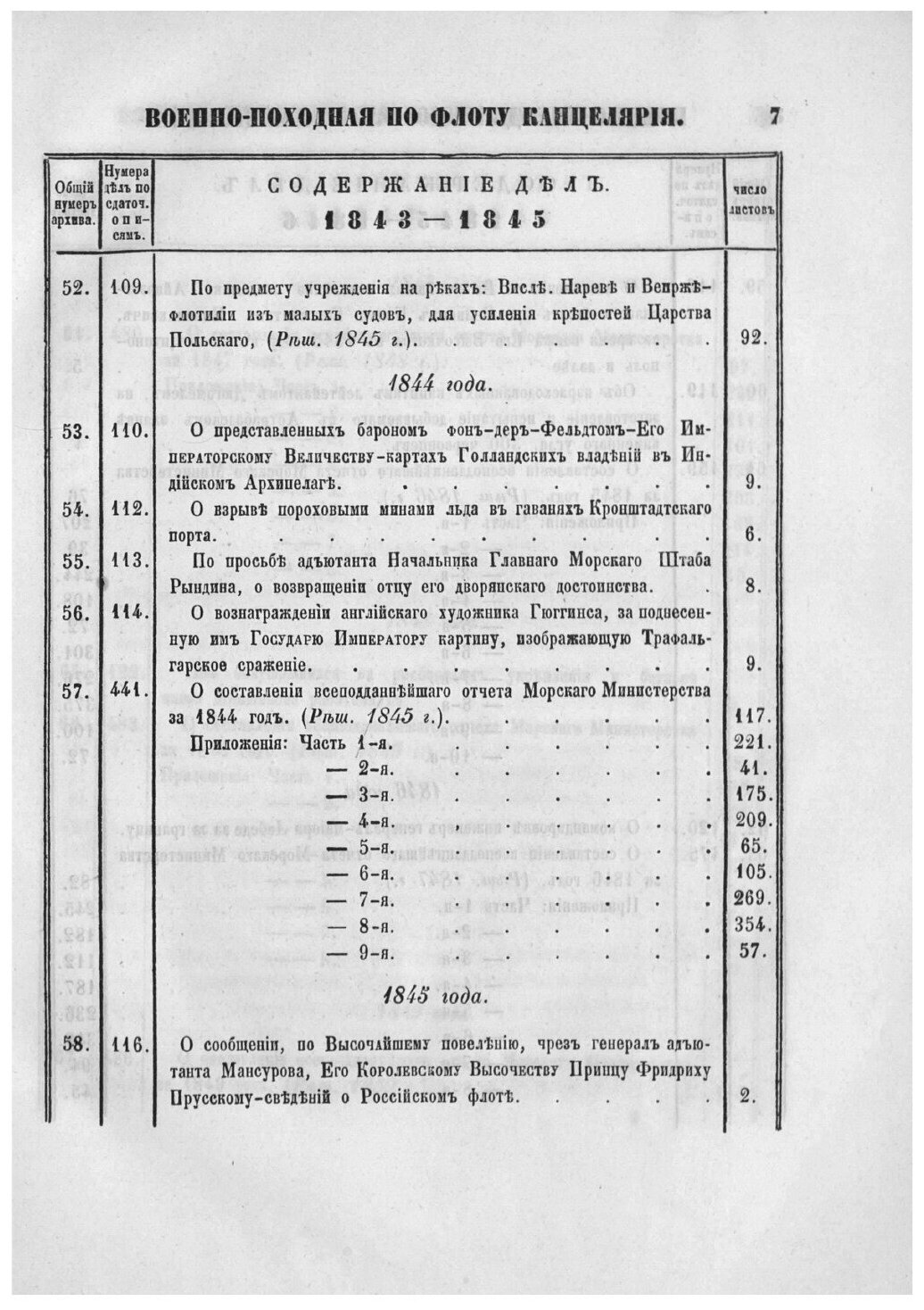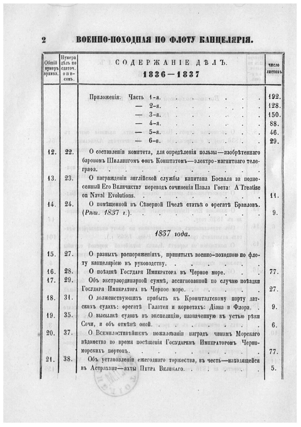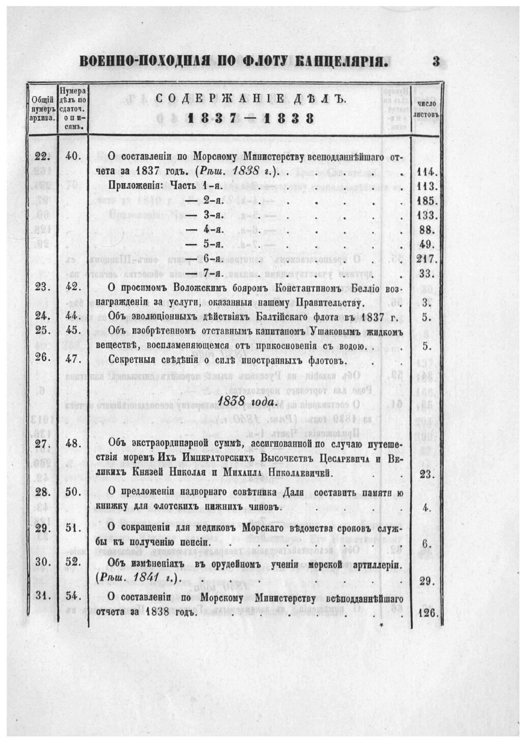 Опись делам и журналам бумаг военно-походной его императорского Величества канцелярии по морской части и делам канцелярии Морского министерства.