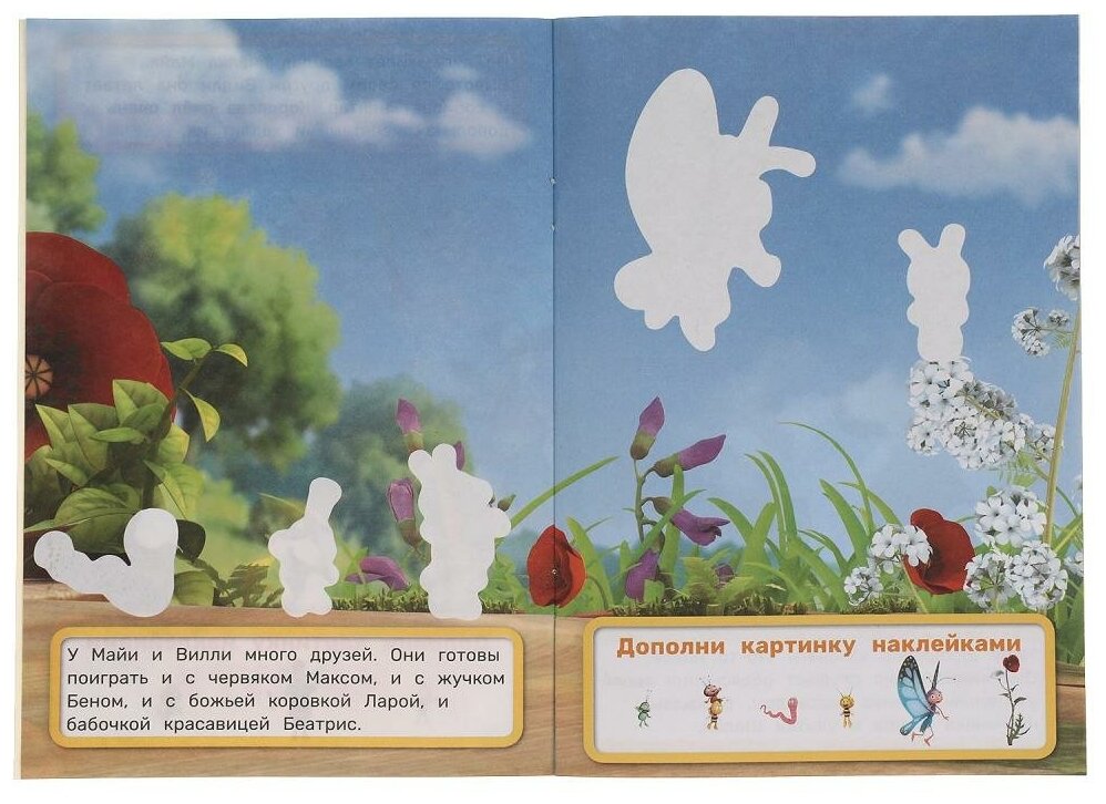 Активити с наклейками для малышей «Пчёлка Майя. На лугу» ТМ «УМка» станет прекрасным развивающим подарком для маленьких поклонников популярного мультфильма:- цветные многоразовые наклейки- развивающие задания- красочные иллюстрации- любимые персонажи- удобный форматМаленький любознайка с удовольствием будет заниматься с этой яркой книжкой, на страницах которой его ждут любимые персонажи и занимательные задания с красивыми наклейками. Благодаря компактному размеру активити можно взять с собой в дорогу.Занятия с активити ТМ «УМка» расширяют кругозор и развивают:- мелкую моторику- сенсорику- творческие способности- внимание- воображение- логикуОбъём: 8 стр. Формат: 145 х 210 мм (А5).Материал: бумага офсетная + самоклеящаяся + картон.Рекомендовано детям старшего дошкольного возраста.