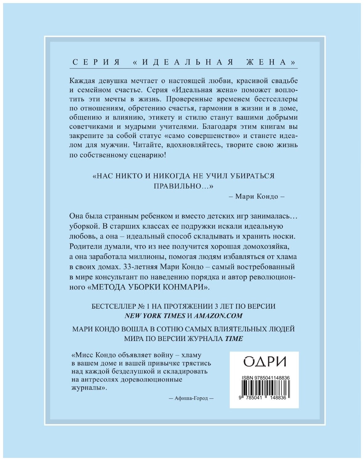 Она была странным ребенком и вместо детских игр занималась. уборкой. В старших классах ее подружки искали идеальную любовь, а она - идеальный способ складывать и хранить носки. Родители думали, что из нее получится неплохая домохозяйка, а она заработала миллионы, помогая людям избавляться от хлама в своих домах. 30-летняя Мари Кондо - самый востребованный в мире консультант по наведению порядка и автор революционного "метода уборки конмари". Следуя ее рекомендация, вы наведете порядок дома и в жизни - один раз и навсегда.Издательство ЭксмоМягкий переплетОбъем - 256 стр.Формат - 205x260 мм.ISBN 978-5-04-114883-6Год издания: 2021