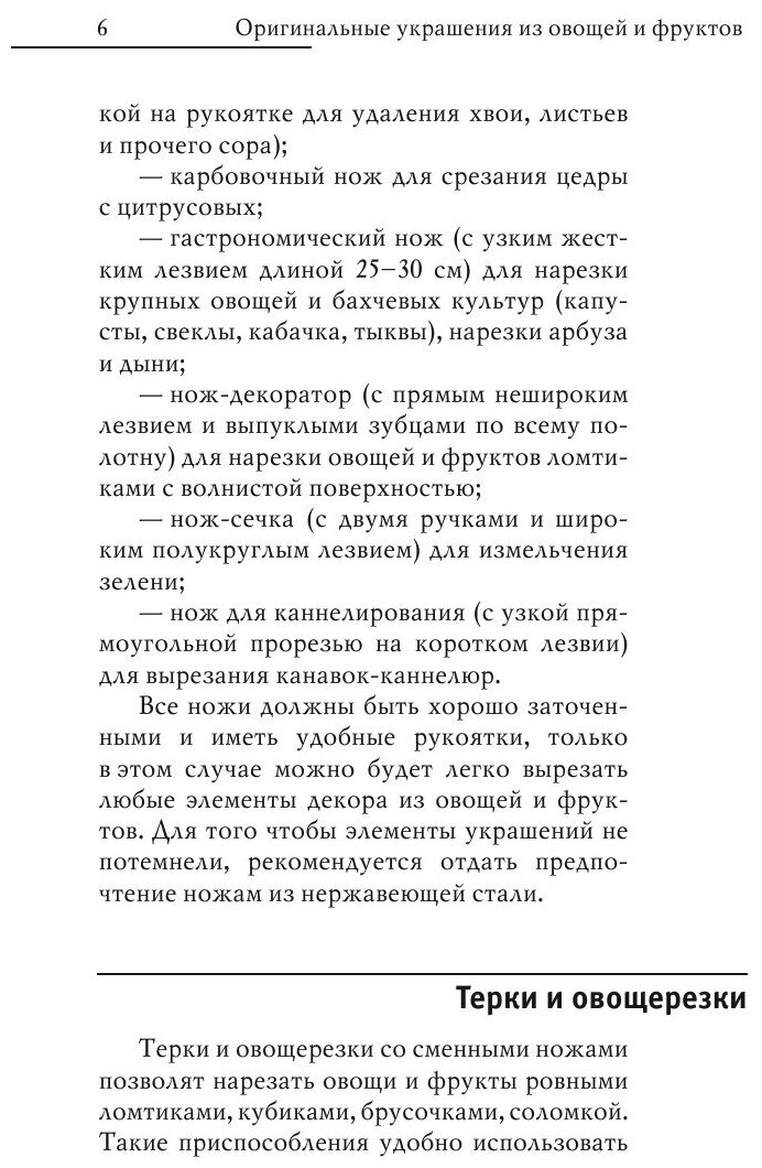 Красиво оформленные блюда на столе способны превратить любой день в праздник, а оригинально оформленное застолье создаст великолепную атмосферу гостеприимства. Украшать можно абсолютно любые блюда - времени это займёт немного, зато доставит удовольствие и хозяйке, и домочадцам. Данная книга поможет освоить основные приёмы изготовления украшений из овощей и фруктов, начиная от самых элементарных и заканчивая изысканными композициями. Эта книга - замечательный подарок для любой хозяйки, которая готова удивлять своих друзей и близких. Приятного аппетита!