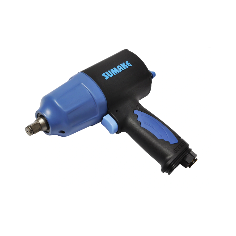 Пневмогайковёрт ударный Sumake ST C541 - применяется для работы с резьбовыми соединениями. Ударно-вращательное действие гайковерта используют для закручивания или откручивания крепежных элементов. Пневматический гайковерт представляет собой эффективный и мощный металлический гаечный ключ ударного действия на 1/2 дюйма. Использование пневматического гайковерта позволяет сэкономить время и силы, значительно повышает долговечность элементов резьбовых соединений, а значит и общее качество сборки механизмаПреимущества Ударный механизм: Twin Hammer - "двойной молот" Конструкция и детали изготовлены с высокой точностью Корпус гайковерта изготовлен из сверхпрочного композитного материала Приводной квадрат изготовлен из прочнейшего сплава хрома, молибдена и никеля Максимальный размер гайки: M16 Способность работы без перерыва продолжительное время Выпуск воздуха через ручку вниз Обрезиненная рукоятка обеспечивает плотное прилегание руки Курок удобного, кнопочного типа