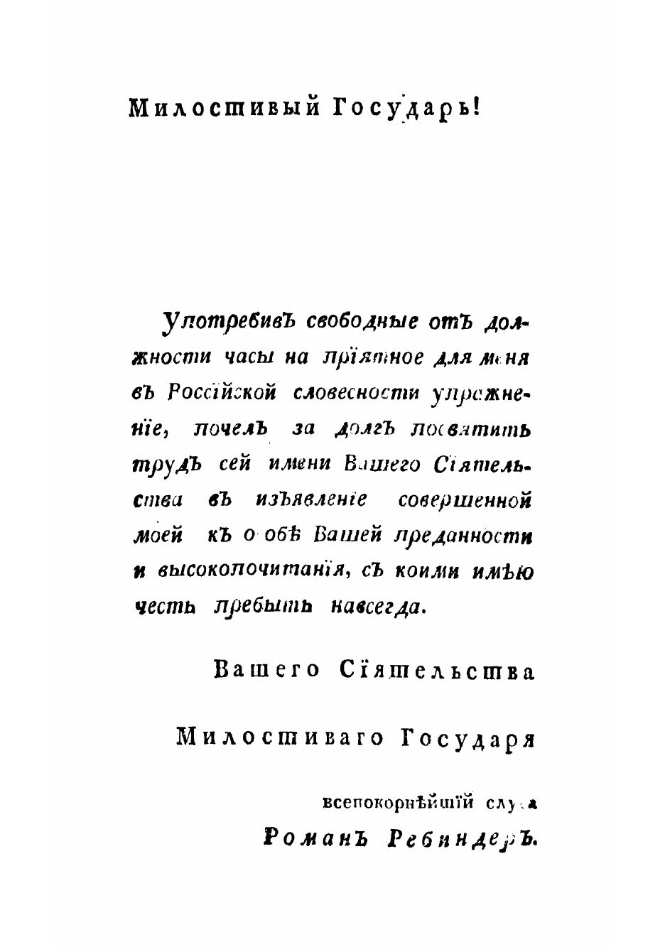 Эта книга — репринт оригинального издания (издательство "Санктпетербург: типография П.Богдановича", 1794 год), созданный на основе электронной копии высокого разрешения, которую очистили и обработали вручную, сохранив структуру и орфографию оригинального издания. Редкие, забытые и малоизвестные книги, изданные с петровских времен до наших дней, вновь доступны в виде печатных книг.