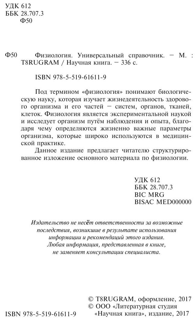 Физиология. Универсальный справочник (без автора), 2017