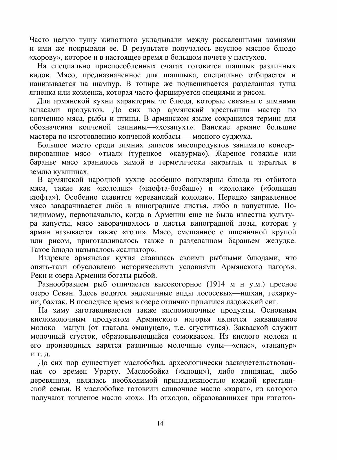 Книга « Армянская кулинария» Знакомит читателей с армянской национальной кухней. В ней приведены рецептуры и технологии приготовления более 500 разнообразных блюд. Большой интерес представляют некоторые старинные блюда армянской кухни, которые благодаря своим высоким вкусовым качествам и питательной ценности не потеряли значение до настоящего времени и могут быть рекомендованы для включения в рацион.Настоящее издание книги, по сравнению с первыми двумя изданиями, пополнено еще 130 рецептами. Из них около 70 рецептов старинных блюд и сладостей армянской кухни, взятых из фонда Матенадарана им. М. Маштоца, и более 60 рецептов восточных блюд, которые издавна вошли в традиционное меню армян и в настоящее время широко используются.