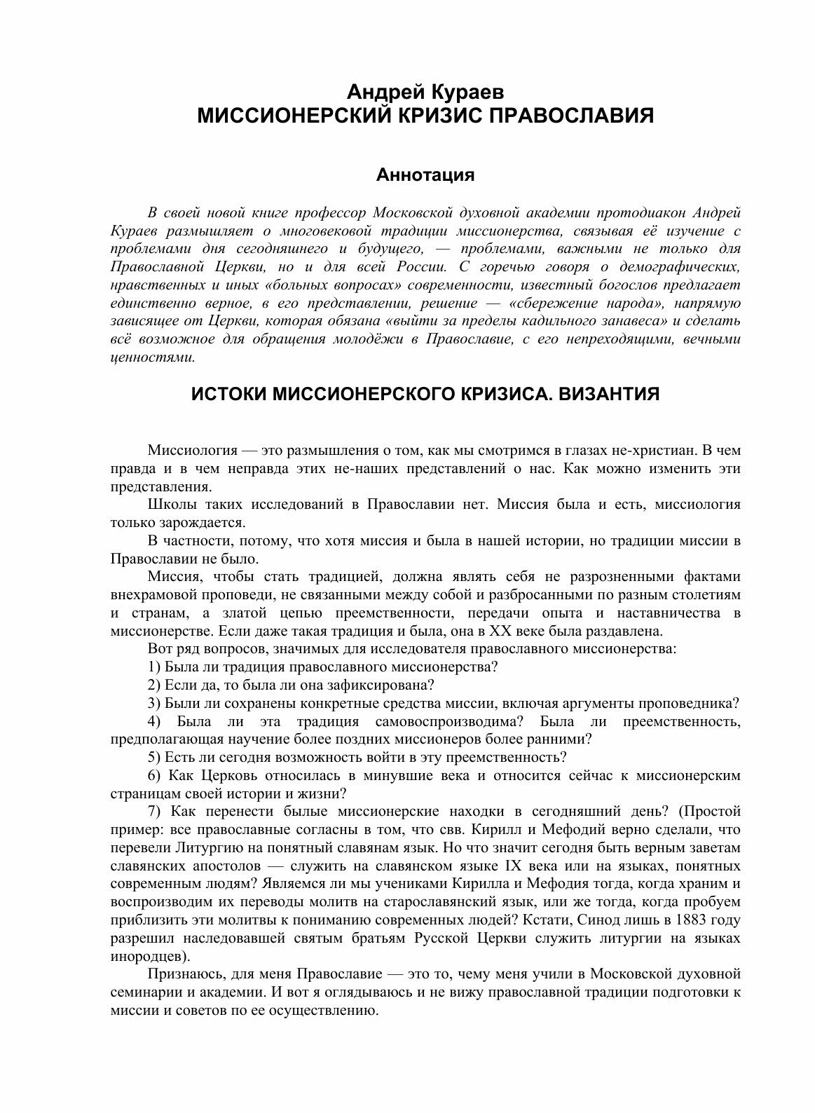 Книга Миссионерский кризис православия (Кураев Андрей), 2016