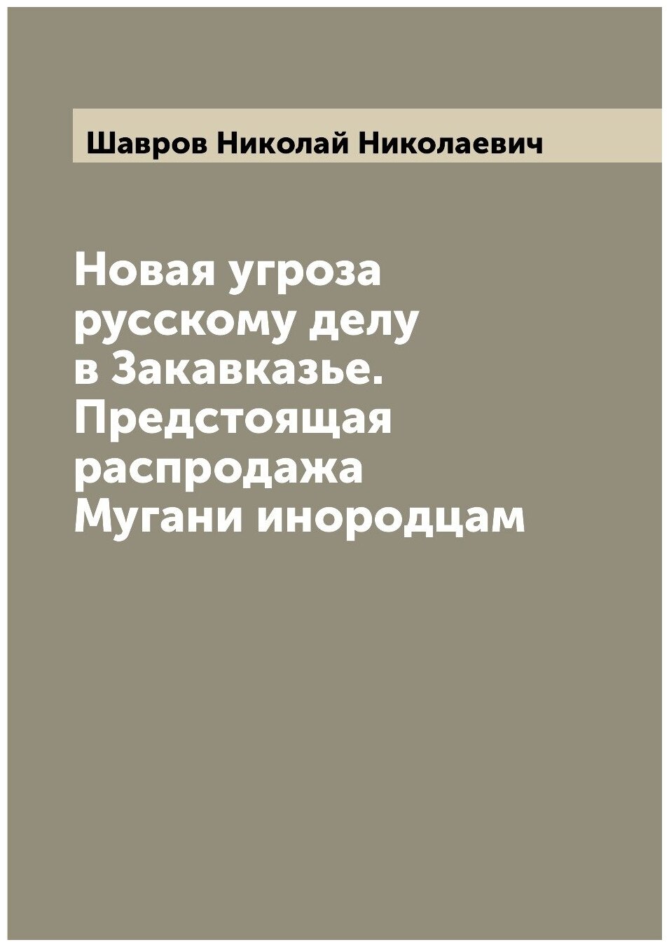 Книга Новая угроза русскому делу в Закавказье. Предстоящая распродажа Мугани инородцам (Шавров Николай Николаевич), 2022
