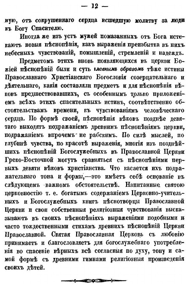 Флоринский (Николай Иванович, 1826 - 1900) - духовный писатель и проповедник, протоиерей в Киеве, магистр киевской духовной академии. В своем сочинении Флоринский излагает историю песнопений православной церкви в продолжение первых девяти веков христианства, так как, по его мнению "Все важнейшее в богослужебном песнопении православной Церкви явилось в течение первых девяти веков христианства: в последствии появилось весьма немногое". В своем обозрении Флоринский рассказывает о содержании, характере и форме православных песнопений.