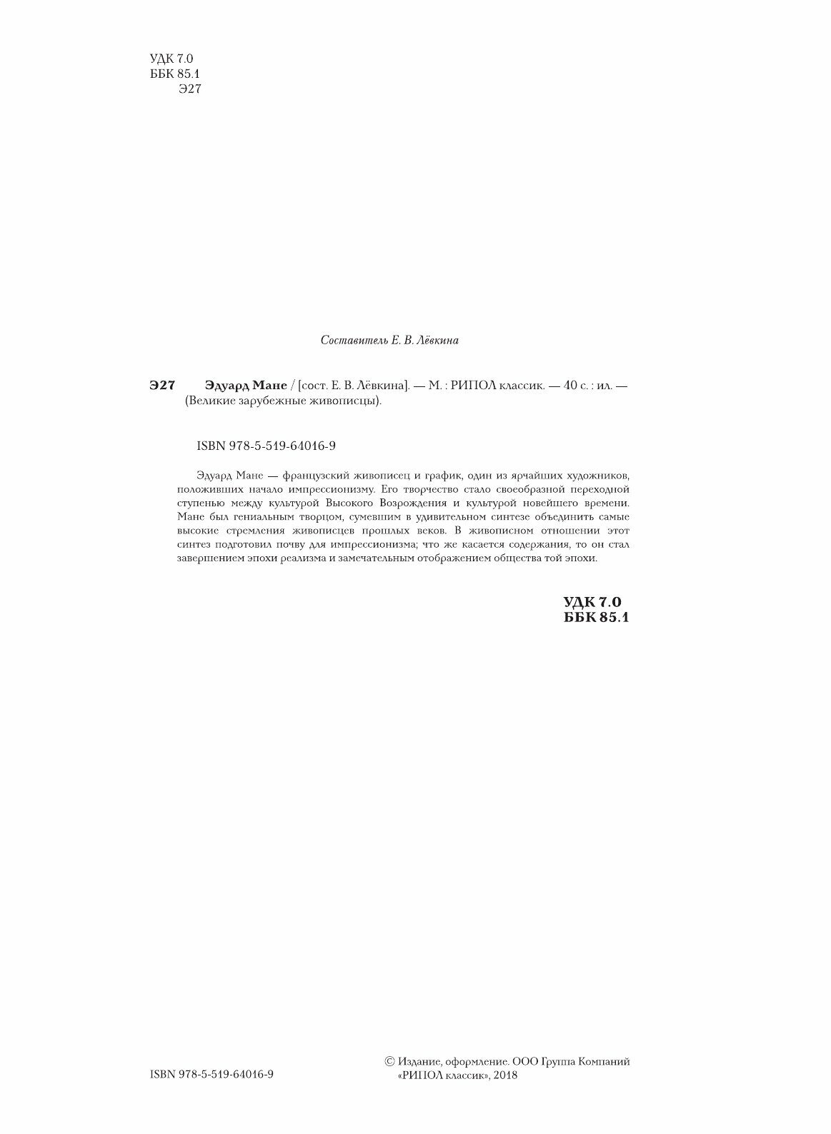 Книга: Книга Эдуард Мане (Крылова Е.), 2018