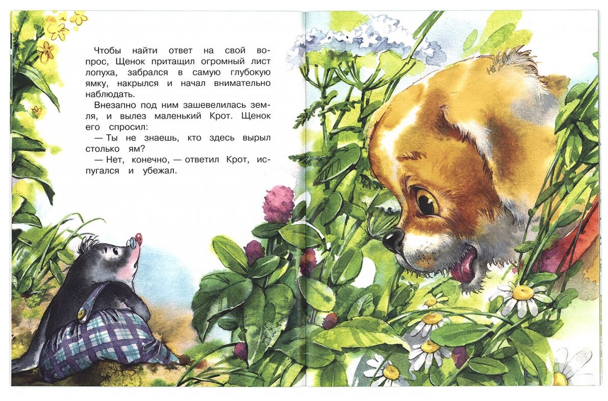 Однажды по большой картофельной грядке прогуливался совсем маленький Щенок. Время от времени он заглядывал в ямки и хорошенько их обнюхивал. Затем оглядывался по сторонам, приклонял нос к земле и удивлялся: куда же подевалась вся картошка?..