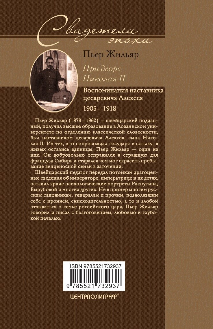 Пьер Жильяр был наставником цесаревича Алексея, сына Николам II. Бесстрашный француз добровольно отправился с опальной царской семьей в Сибирь и старался чем мог скрасить пребывание в заточении царя, царицы и их детей. Жильяр передал потомкам драгоценные сведения о последних днях императорской семьи, оставил яркие психологические портреты Распутина, Вырубовой и многих других известных личностей этой трагической эпохи в жизни России.
