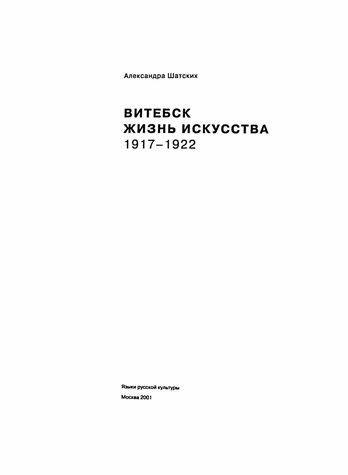 Книга Витебск. Жизнь искусства 1917-1922 (А. С. Шатских); Языки Славянской Культуры, 2001