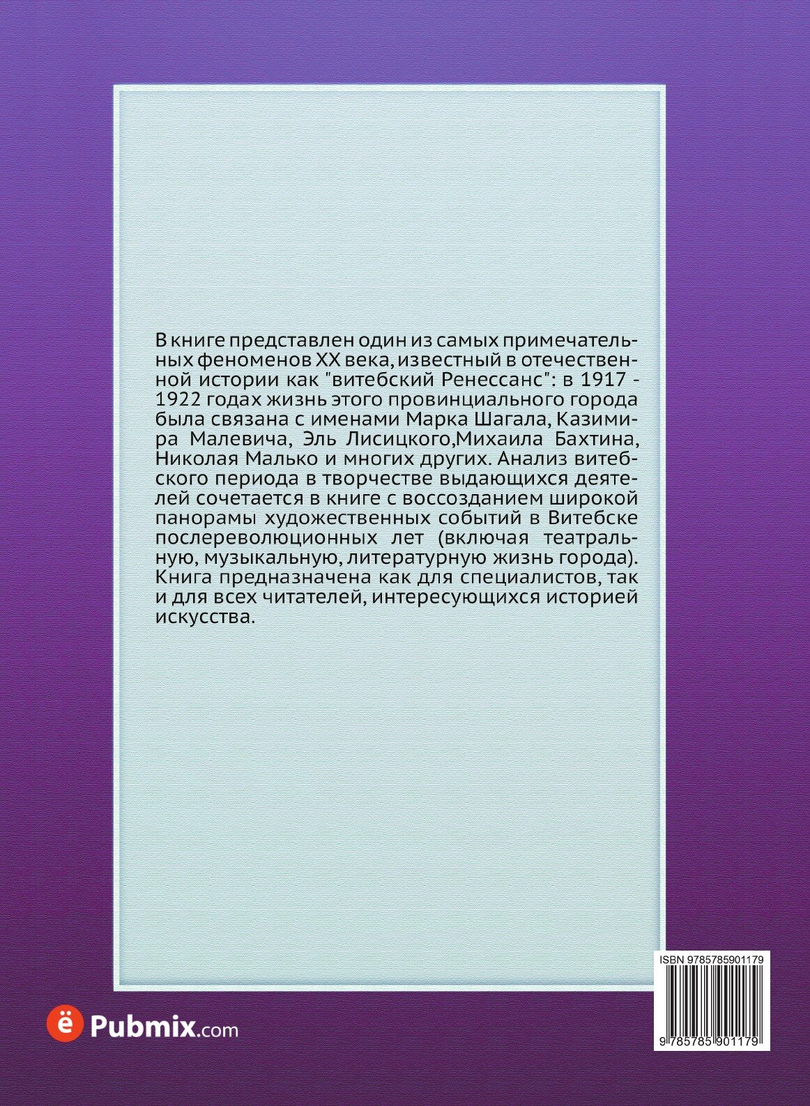 В книге представлен один из самых примечательных феноменов XX века, известный в отечественной истории как "витебский Ренессанс": в 1917 - 1922 годах жизнь этого провинциального города была связана с именами Марка Шагала, Казимира Малевича, Эль Лисицкого,Михаила Бахтина, Николая Малько и многих других. Анализ витебского периода в творчестве выдающихся деятелей сочетается в книге с воссозданием широкой панорамы художественных событий в Витебске послереволюционных лет (включая театральную, музыкальную, литературную жизнь города). Книга предназначена как для специалистов, так и для всех читателей, интересующихся историей искусства.