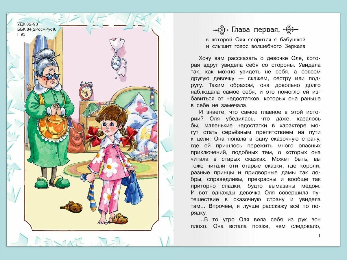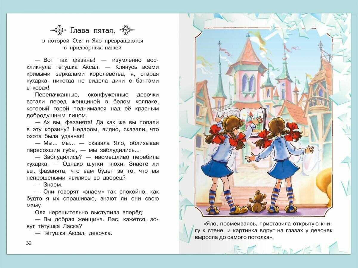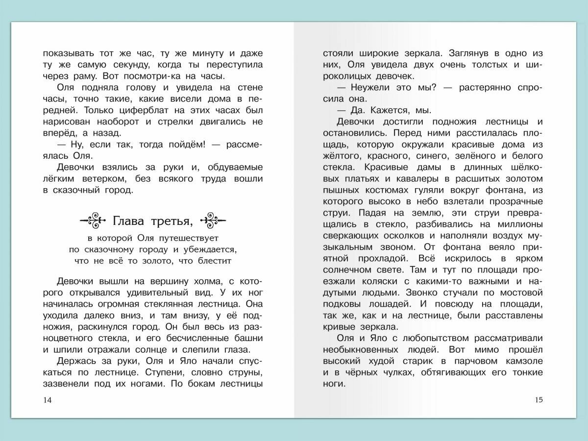 Знаменитая повесть-сказка Виталия Губарева «Королевство кривых зеркал» рассказывает о приключениях девочки Оли и её зеркального отражения — Яло. В королевстве кривых зеркал, где правит глупый король Топсед, богачи поработили и угнетают бедных, а говорить правду совсем не приветствуется. Близняшкам предстоит выступить за справедливость против коварных Анидаг, Нушрока и Абажа — приближённых короля, а также спасти от казни ни в чём не повинного человека. Книга учит добру, справедливости и дружбе. Произведение входит в программу внеклассного чтения и адресовано ученикам среднего школьного возраста. Текст повести представлен без сокращений и напечатан на хорошей бумаге крупным шрифтом. Книга содержит яркие иллюстрации. Средний формат, твёрдый переплёт и небольшой вес издания делают его удобным для домашней или школьной библиотеки. Книги серии «Школьная библиотека» — замечательный и полезный подарок ребёнку.