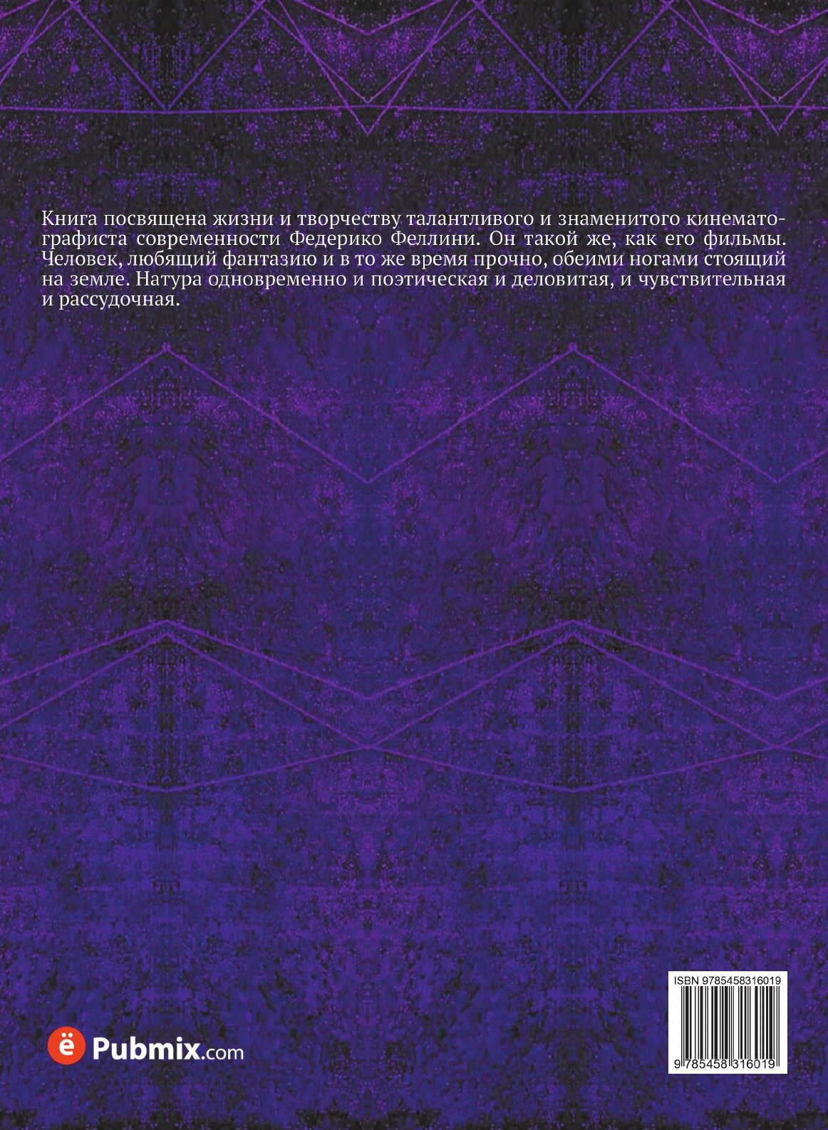 Книга посвящена жизни и творчеству талантливого и знаменитого кинематографиста современности Федерико Феллини. Он такой же, как его фильмы. Человек, любящий фантазию и в то же время прочно, обеими ногами стоящий на земле. Натура одновременно и поэтическая и деловитая, и чувствительная и рассудочная.