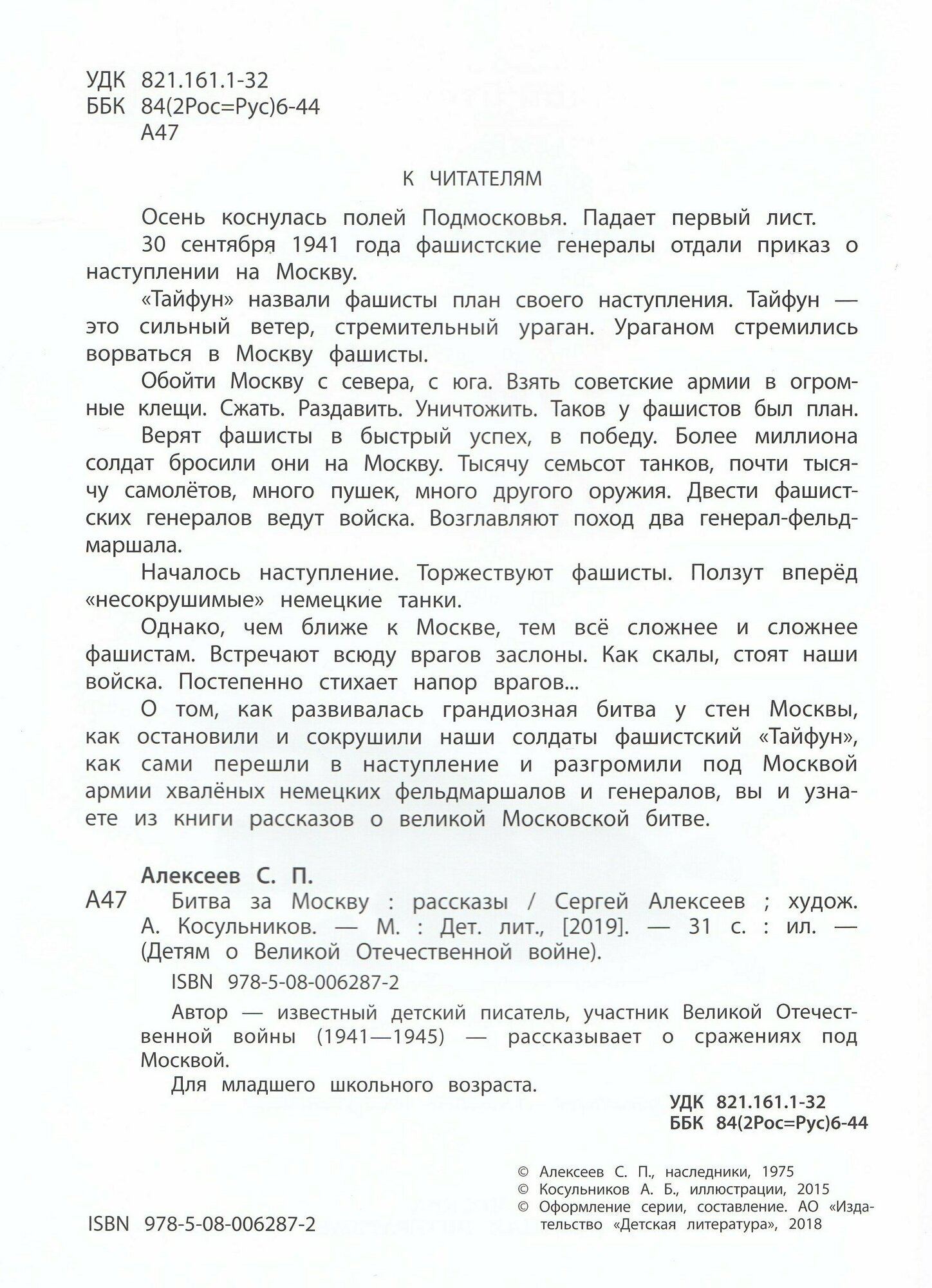 Книга: Книга Битва за Москву (Детям о Великой Отечественной войне), 2019