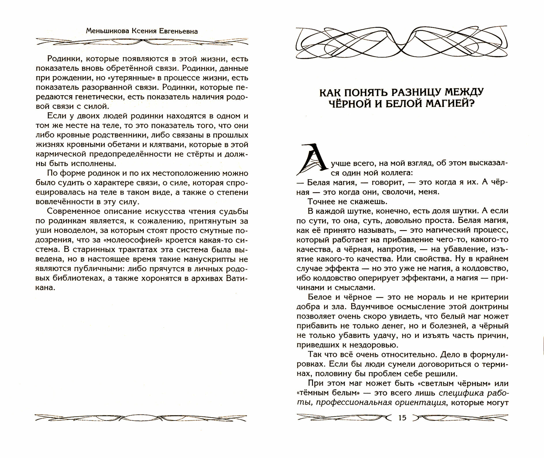 Перед вами пятая книга серии "Магия в вопросах и ответах", и каждая из них поможет читателю узнать что-то сокровенное. Книги необычные, авторов у них много: это основатель Школы Ксения Евгеньевна Меньшикова, преподаватели Школы и её ученики. В тексте использована живая переписка с форума "Магия едина": реальные люди, невыдуманные проблемы, животрепещущие вопросы… В этой книге мы поговорим о том, что День Рождения - не просто переход с одного возрастного уровня на другой. Это единственный день, когда можно без избыточных магических усилий приблизиться к тому уровню памяти, с которым человек в этот мир пришёл. А приблизившись, вспомнить - зачем? Получим информацию о том, что означают родинки на теле человека. Узнаем, чем чёрная магия отличается от белой и есть ли вообще между ними разница. И конечно, подробно разберём тему сновидений. Сны… Что это? Случайные картинки и сюжеты, всплывающие из уставшего за день мозга, или реальные прогулки в астральном пространстве, в процессе которых можно проникнуть в такие миры, куда наяву человеческий разум может забрести только в грёзах…