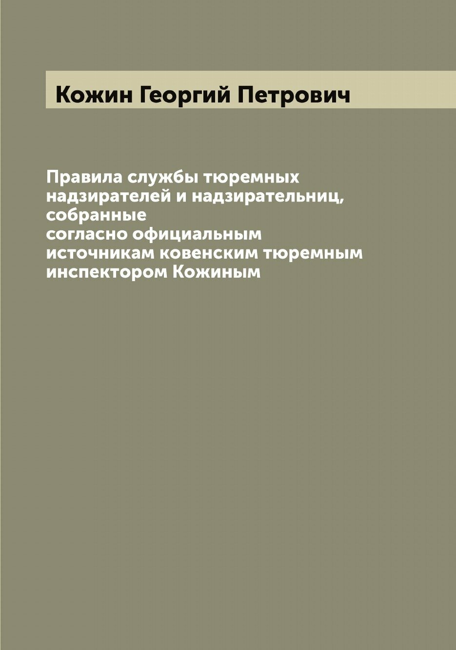 Книга Правила службы тюремных надзирателей и надзирательниц собранные согласно официал... (Кожин Георгий Петрович), 2022