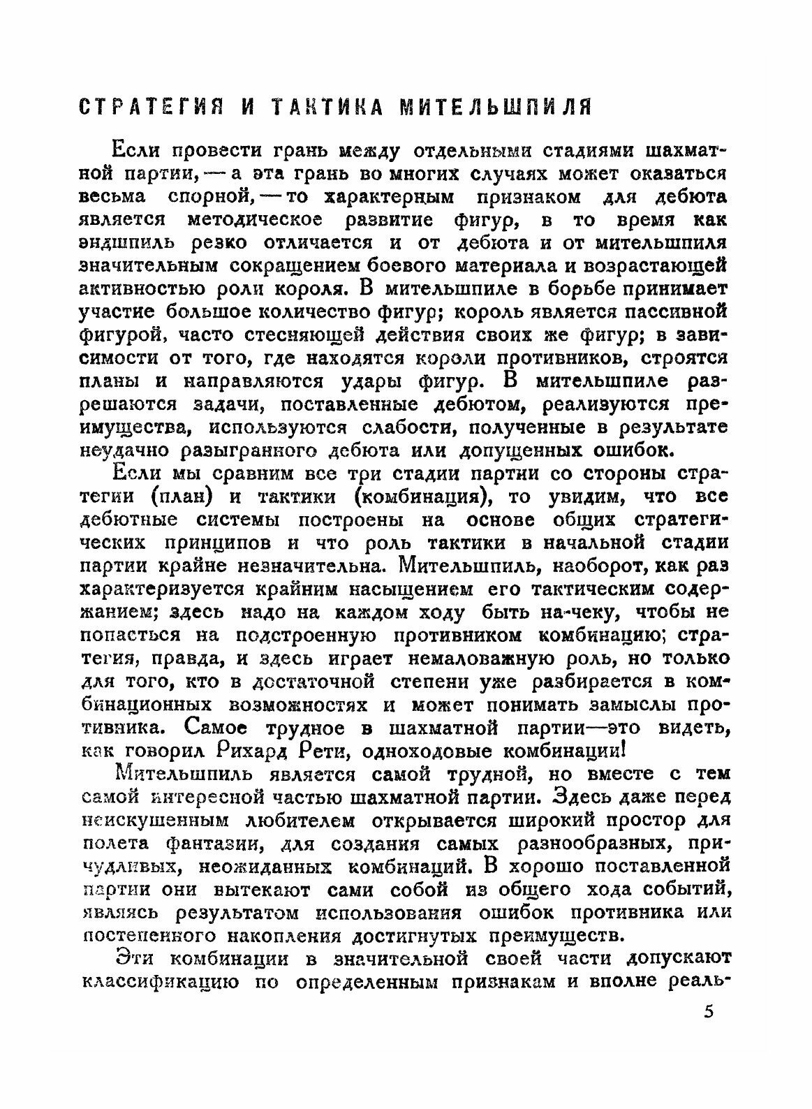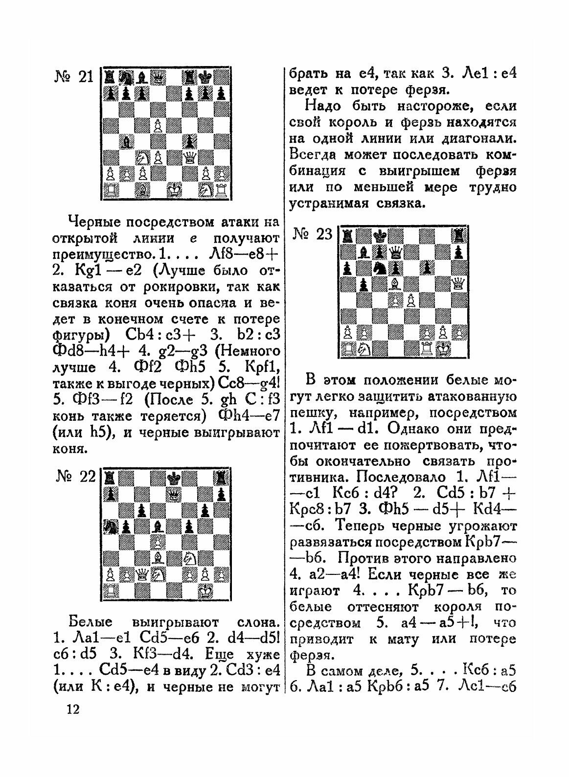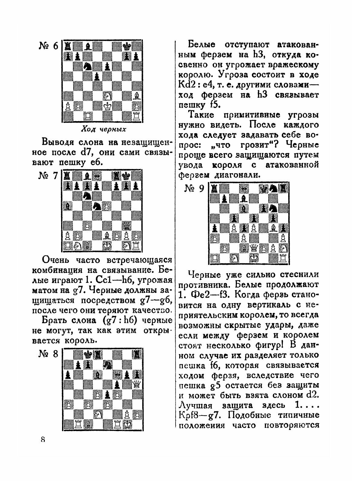 Что должен каждый знать о миттельшпиле.Библиотечка шахматиста.Предлагаемая вниманию читателя книжка является второй частью изданного Таррашем в 1931 г. объемистого учебника шахматной игры ("Das Schachspiel") Работа Тарраша в целом рассчитана на мало или почти неподготовленного читателя и требует от него лишь знания шахматной аннотации и правил игры. Предлагаемый читателю отдел ее рассматривает только одну, но наиболее сложную часть шахматной партии, так называемый миттельшпиль. Работа Тарраша не сложна, не замысловата, но тем не менее может и должна принести пользу и начинающим и членам низовых секций. Тарраш оперирует типичными комбинациями, защитами и атаками миттельшпиля и на примере их открывает тактические и стратегические тонкости этой стадии партии.