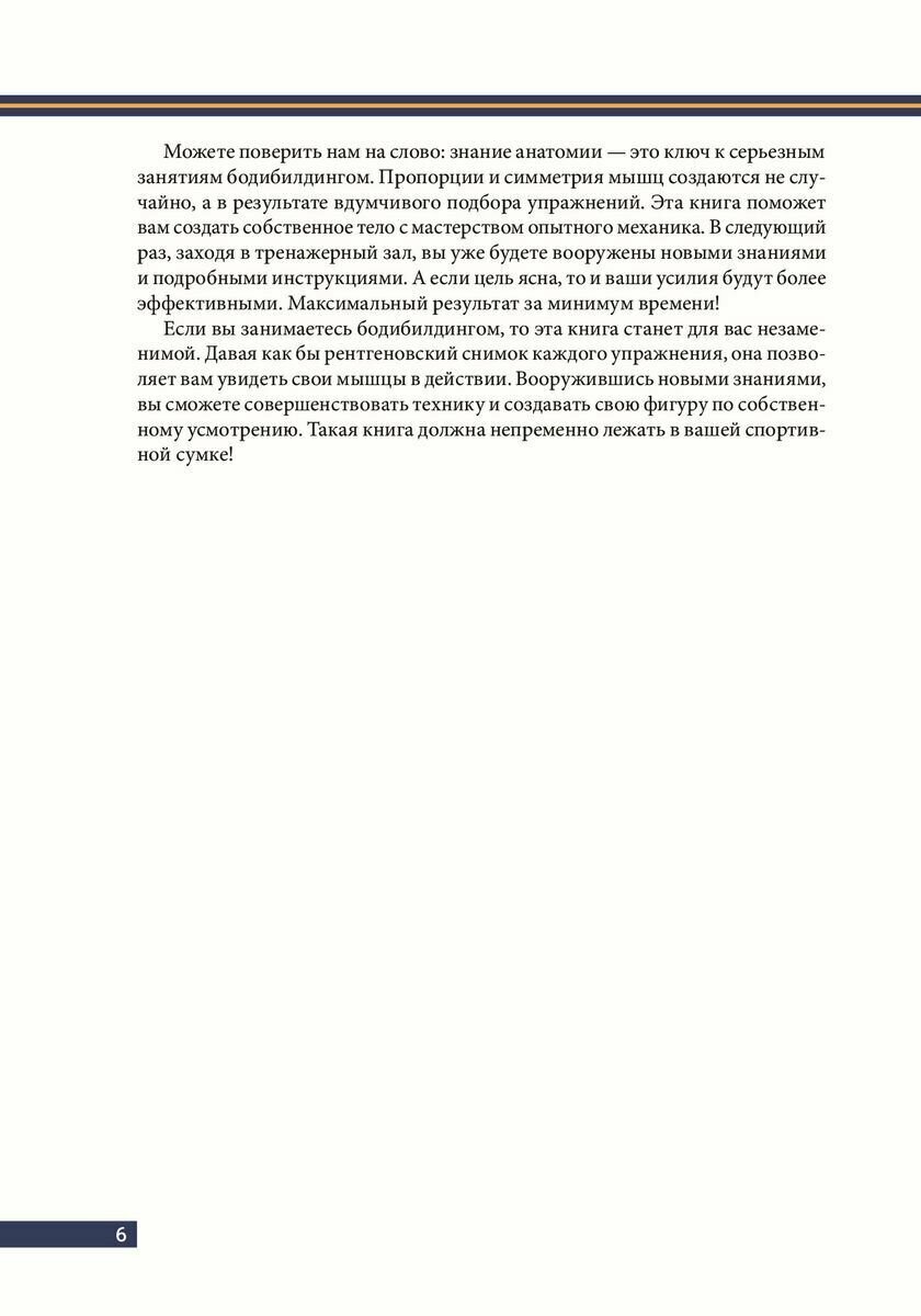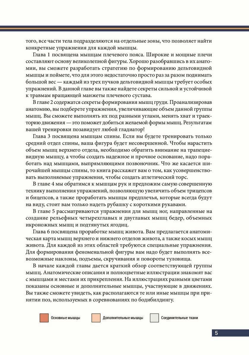 Вы можете вылепить из своего тела всё, что захотите! Полноцветные анатомические иллюстрации к упражнениям и пошаговые инструкции по их правильному выполнению делают эту книгу бесценным источником информации для всех желающих усовершенствовать свое тело. Новая редакция бестселлера Ника Эванса содержит 100 базовых упражнений, а также более сотни их разновидностей, которые помогут вам воплотить в жизнь свою мечту. Независимо от того, являетесь ли вы новичком или тренируетесь уже на протяжении многих лет, книга принесет вам огромную пользу. Она откроет читателю тайны, известные лишь опытным спортсменам и тренерам. Вы узнаете множество технических уловок, позволяющих видоизменить любое упражнение для получения нужного результата и составить индивидуальную программу тренировок. Новая редакция.