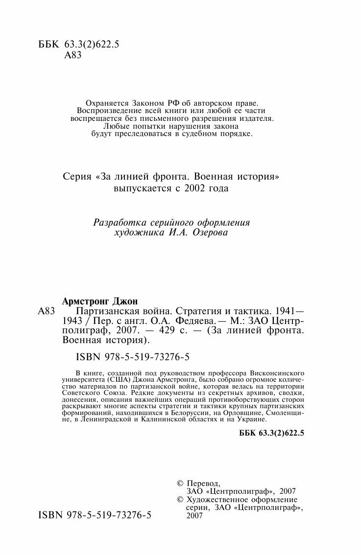 Книга Партизанская война Стратегия и тактика 1941—1943 (Джон Армстронг), 2007