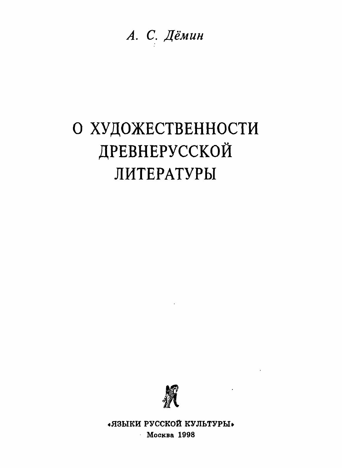Книга О Художественности Древнерусской литературы (Демин Анатолий Сергеевич), 1998