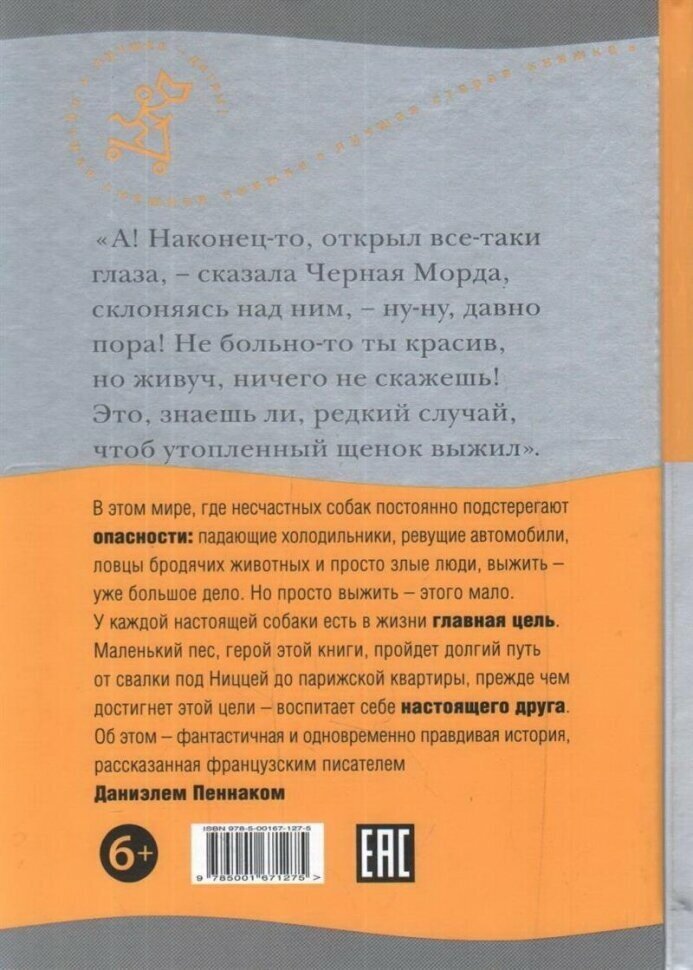 Маленькому бездомному псу, герою этой книги, придется очень и очень нелегко, прежде чем он осуществит заветную мечту каждой собаки: воспитает себе друга. Об этом трогательная и смешная история, рассказанная известным французским писателем Даниэлом Пеннаком, при всей своей фантастичности очень, в сущности, правдивая. Для среднего школьного возраста. 9-е издание.