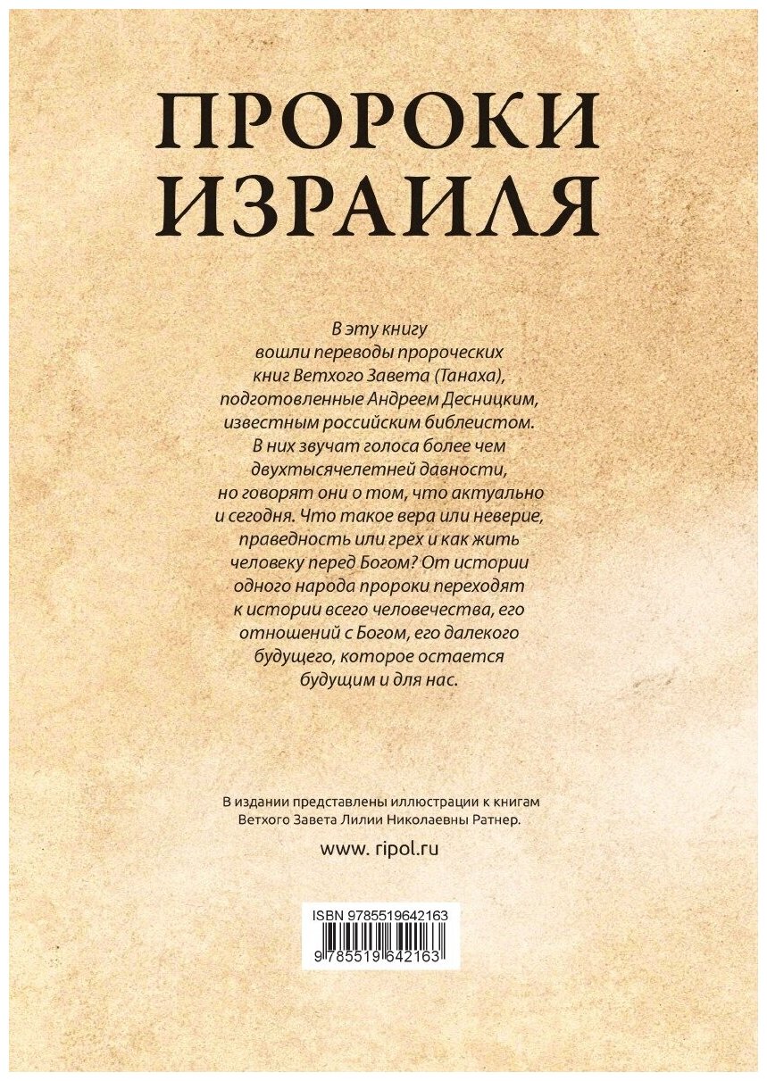 В эту книгу вошли переводы пророческих книг Ветхого Завета (Танаха), подготовленные Андреем Десницким, известным российским библеистом. В них звучат голоса более чем двухтысячелетней давности, но говорят они о том, что актуально и сегодня. Что такое вера или неверие, праведность или грех и как жить человеку перед Богом? От истории одного народа пророки переходят к истории всего человечества, его отношений с Богом, его далекого будущего, которое остается будущим и для нас.В издании представлены иллюстрации к книгам Ветхого Завета Лилии Николаевны Ратнер.