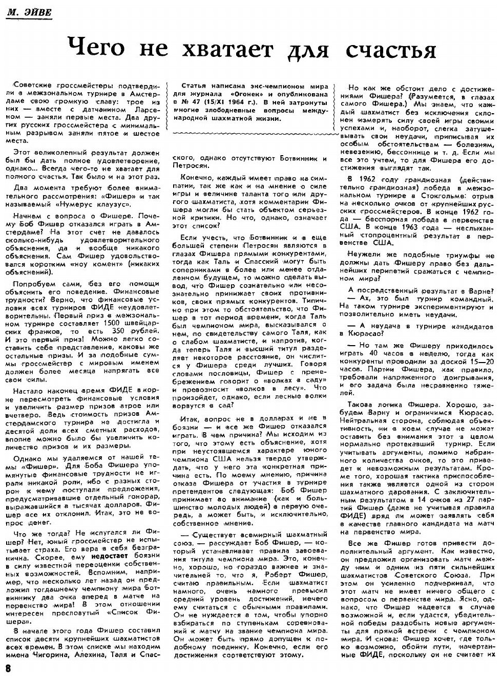 Советский шахматный ежемесячный журнал, печатный орган Шахматной федерации СССР. Журнал был основан в 1931 году на базе журнала «Шахматный листок». По состоянию на 1987 год распространялся в 50 странах мира, общий тираж: 52 тыс. экземпляров. В 1995 году журнал был переименован в «Шахматы в России». В 1999 году журнал перестал выходить.