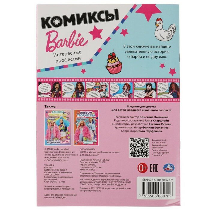 Эти увлекательные комиксы, состоящие практически из одних картинок с минимальным количеством текста, приглашают детей окунуться в удивительный мир красавиц-кукол Барби. Такой формат непременно заинтересует ребёнка, он с удовольствием будет читать вместе с родителями про разные профессии, а яркое оформление со множеством иллюстраций сделает чтение ещё более интересным.