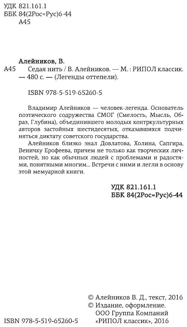 Книга: Книга Седая нить (Алейников Владимир Дмитриевич), 2016