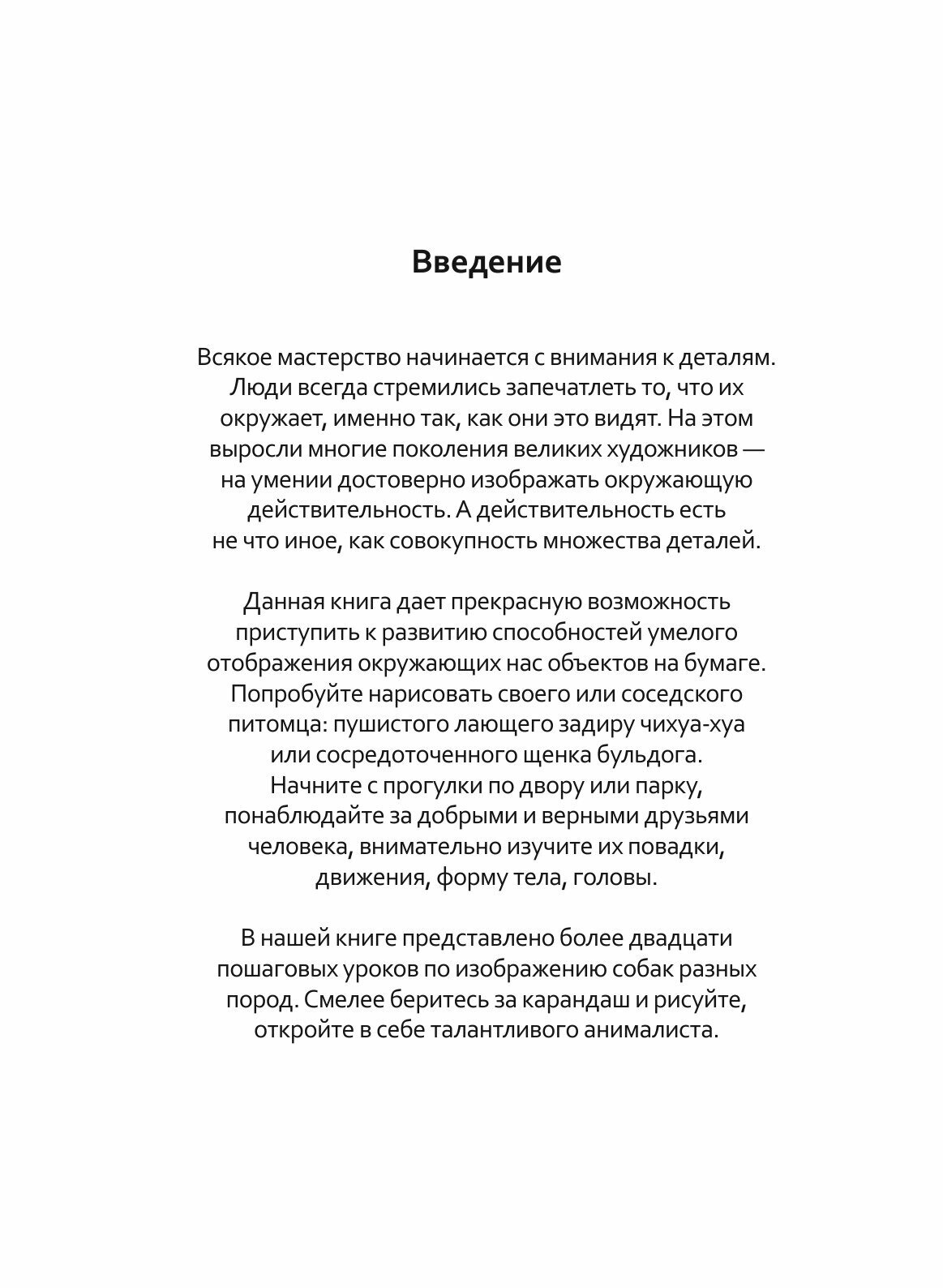 Хочешь научиться рисовать, но не знаешь, с чего начать Эта книга поможет тебе! Кто угодно сможет нарисовать пушистых питомцев, пользуясь инструкциями из этой книги. Рисуй собак шаг за шагом и наслаждайся результатом. Вдохновение гарантировано!